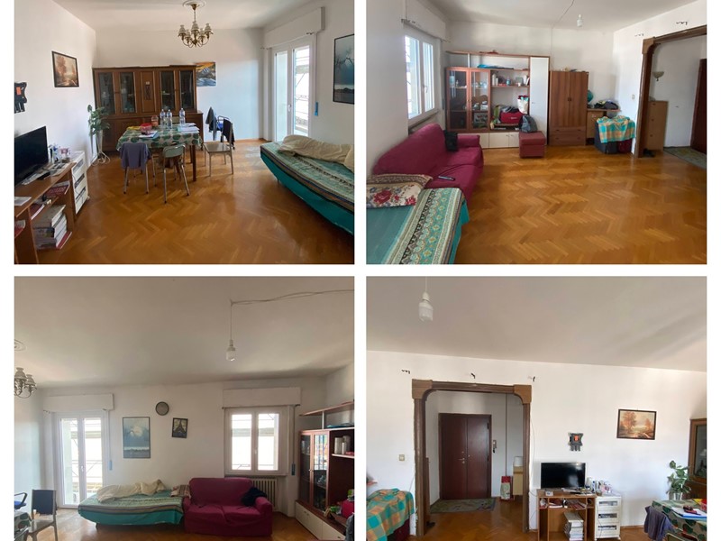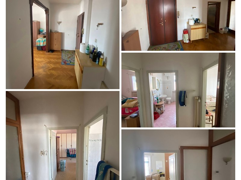 Appartamento di superficie lorda di circa mq 109, al 5°piano di un edificio condominiale denominato "Grattacielo", composto da ingresso posto a sinistra di chi sale le scale , soggiorno, cucina, 2 camere, bagno, disimpegno, ripostiglio e terrazzo. Le finiture e gli infissi sono in gran parte dell'epoca di costruzione, ma l'appartamento risulta abitabile. Il Garage di superficie lorda di circa mq 23, posto al piano terra, risulta accessibile dal resede condominiale e collegato con l'androne condominiale.
