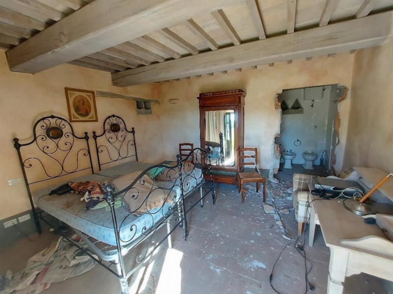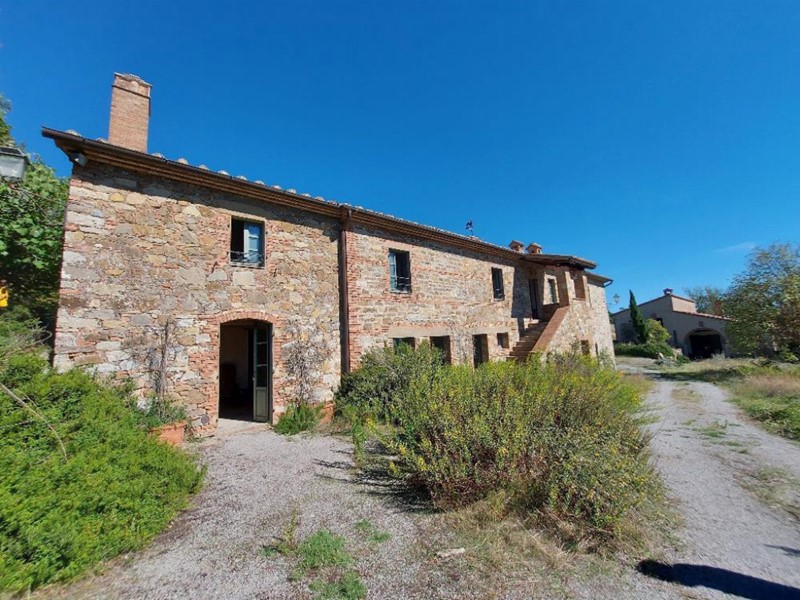 Diritto di piena proprietà del complesso immobiliare sito in San Casciano dei Bagni, frazione di Fighine, Località Le Radici, costituito da un fabbricato principale, un fabbricato secondario, una tettoia in muratura, una piscina ed accessori, oltre a resede, piazzali e spazi verdi circostanti e pertinenziali alla struttura, nonché numerosi terreni, per la superficie di sessanta ettari circa, per lo più boschivi con limitate porzioni a uliveto e vigneto e colture ormai dismesse.Il compendio immobiliare, già destinato a funzione ricettiva-agrituristica, è composto da:- un fabbricato principale edificato in pietra a vista, posto su due livelli: al piano terreno sono collocate tre camere da letto munite di bagno (una di esse è provvista pure di soggiorno), oltre a zona ristorante composta da ingresso, soggiorno con caminetto, servizi igienici, sala da pranzo e cucina con dispensa; al medesimo piano, ma con ingresso autonomo, si trovano due vani tecnici ove sono collocate, rispettivamente, derivazioni dell’impianto idraulico ed un bollitore per la produzione di acqua calda sanitaria. Al piano primo è presente un appartamento (con ingresso da corte) composto da soggiorno con caminetto, cucinotto con caldaia alimentata a GPL, disimpegno, camera da letto e bagno; al medesimo piano, con ingresso da scala esterna e loggia, si accede ad una zona a destinazione tipicamente ricettiva e provvista di ingresso con caminetto, disimpegno, cinque camere da letto con bagno (ed una con soggiorno);- un fabbricato secondario, sviluppantesi al solo piano terra su livelli sfalsati, composto, al livello inferiore, da un appartamento con ingresso-soggiorno (con caminetto), cucina (con dispensa e caldaia, alimentata a GPL), bagno, cameretta e camera matrimoniale e, al livello superiore, con ingresso autonomo, da una unità ricettiva composta da una camera da letto con soggiorno e bagno e da un’altra camera provvista soltanto di bagno; all’esterno vi è un forno, mentre sullo scoperto adiacente insistono due depositi di GPL, entrambi interrati;- una tettoia edificata in muratura e collocata in prossimità del fabbricato principale, un locale tecnico con centrale termica e deposito, muniti di ingressi autonomi, ed una piscina con vano tecnico interrato;- terreni di natura agricola, della superficie complessiva di circa 60 ettari, ubicati intorno al complesso edificato e costituiti da appezzamenti a varia coltura, prevalentemente investiti a bosco, con pascoli e seminati arborati, circa 3,5 ettari di oliveto e circa 1 ettaro di vigneto.