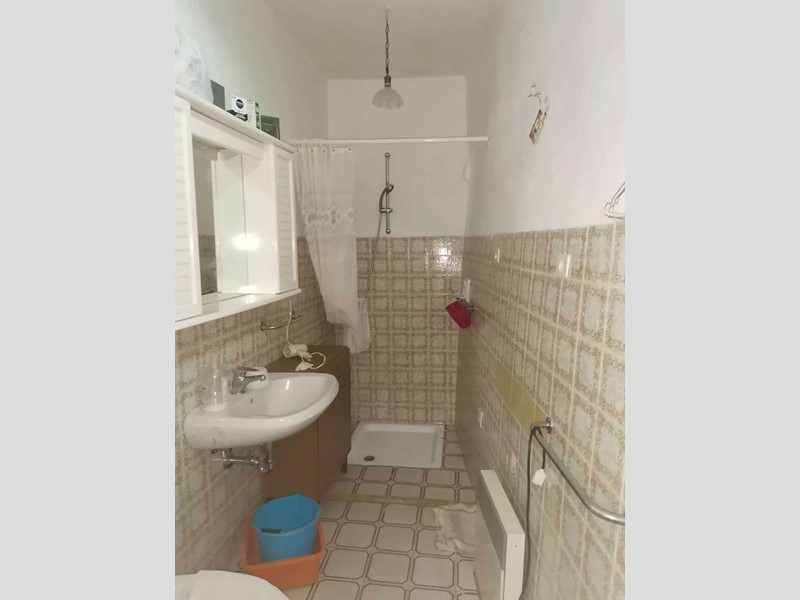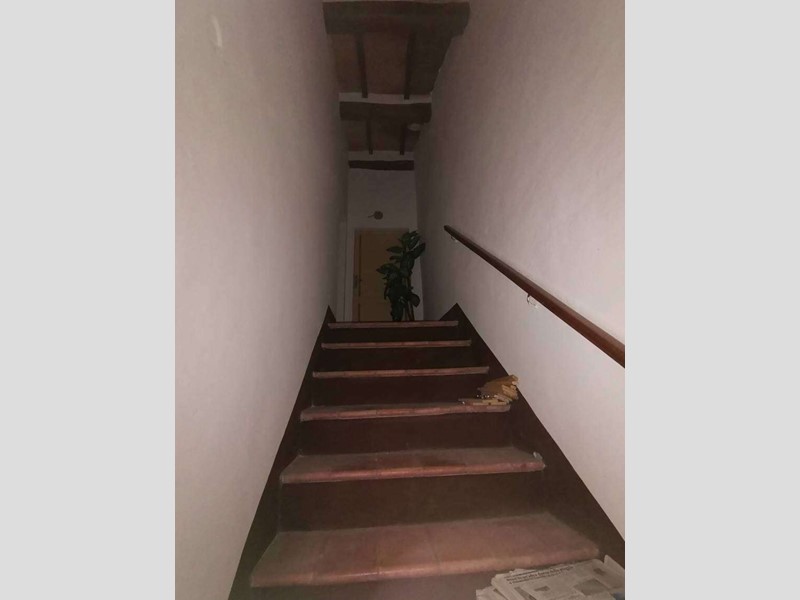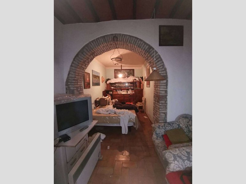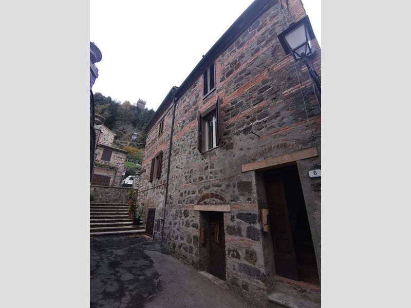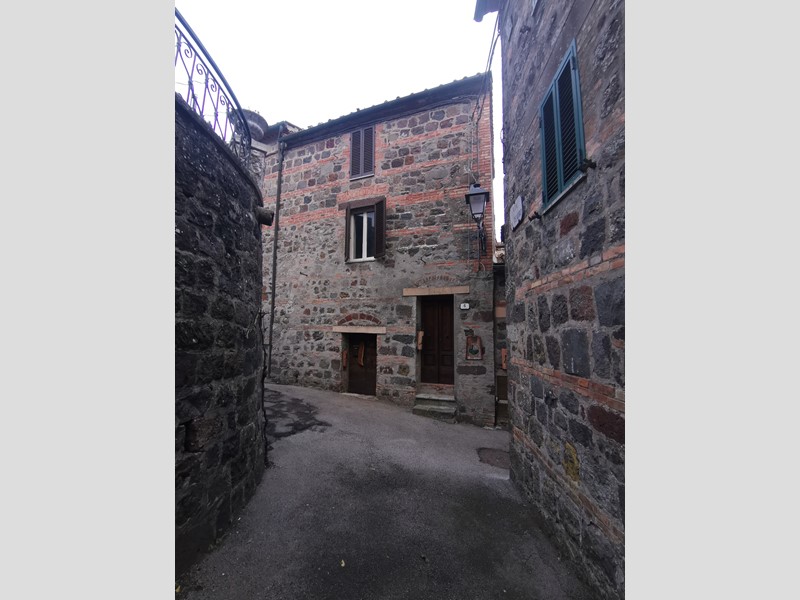 Unità immobiliare terratetto per civile abitazione, censita al Foglio 90, P 302 sub 3, Cat A/4, Cl 3, Cons. 5 vani, sita in Radicofani in via del Teatro n.6, entrata indipendente, su tre piani, composta al piano terreno due locali di cui uno legnaia e uno cantina; al piano primo, vi è un locale cottura/pranzo, una dispensa ed un bagno; al piano secondo sono presenti due camere ed un piccolo disimpegno che funge da pianerottolo della scala di collegamento con il piano primo sottostante.