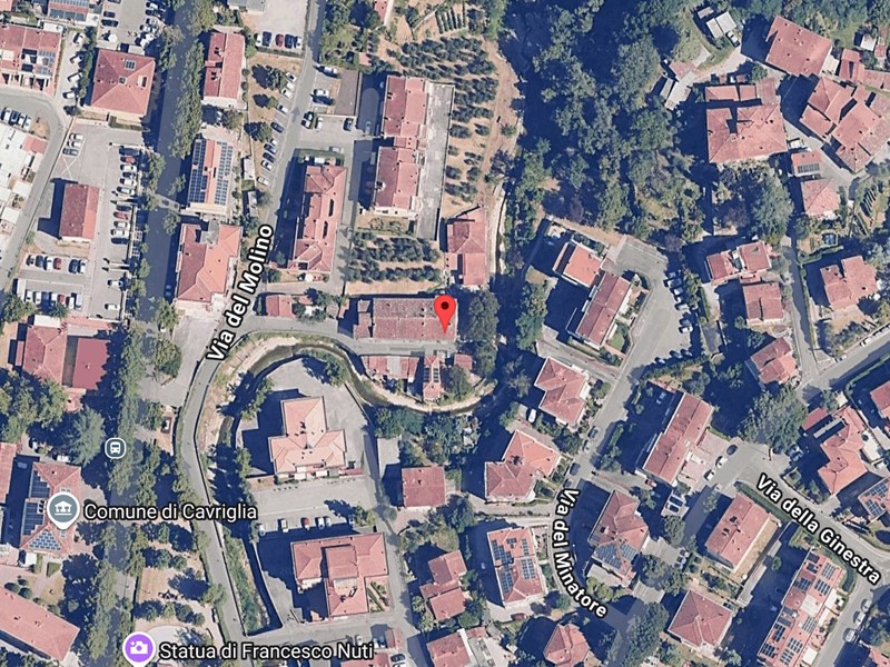 Piena proprietà su appartamento per civile abitazione posto a piano primo del fabbricato di tre piani fuori terra ubicato in Cavriglia (AR), Via del Molino 19, cui si accede da ingresso e scale a comune, composto da cucina, pranzo, soggiorno, due camere, bagno, disimpegno-ingresso, piccolo w.c. e sottoscala, il tutto corredato da resede esclusivo di circa 80 mq, in parte recintato, sul quale insiste un manufatto ad uso cantina suddiviso in due locali, il tutto contraddistinto al Catasto Fabbricati del detto Comune al foglio 47, p.lla 68, sub 20, cat. A/3, classe 3, vani 6,5, r.c. € 352,48 e foglio 47, p.lla 199, sub 3 (con graffata la p.lla 73 sub 3), cat. C/2, classe 5, consistenza 24 mq, r.c € 140,06.