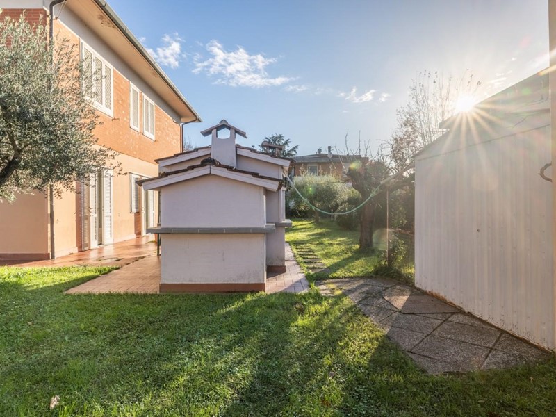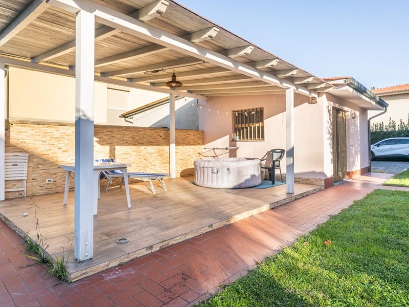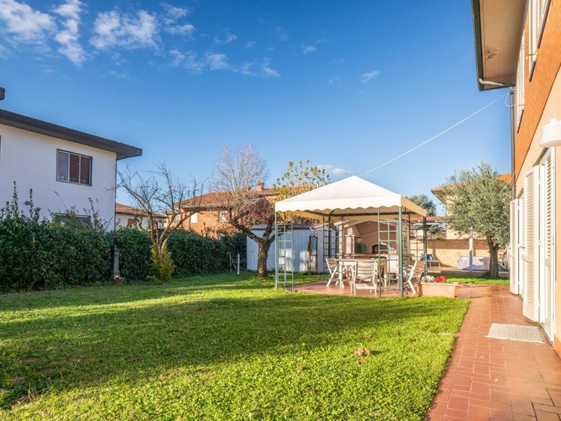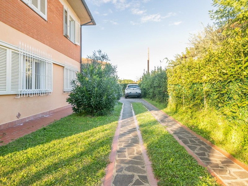 In zona signorile di Cenaia, a due passi dal centro e vicina alla pista ciclabile, questa raffinata abitazione ha accesso da cancello carrabile e pedonale sul verde curato che circonda le sue mura.