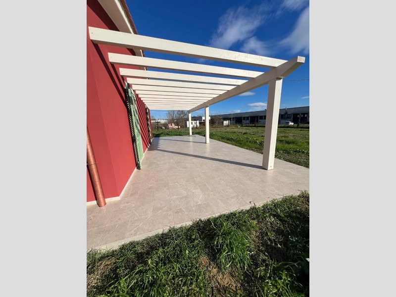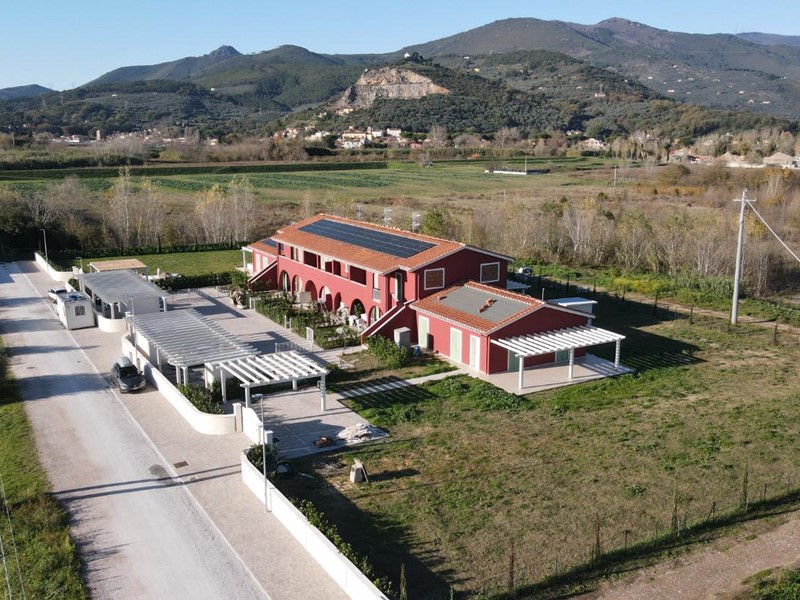 Fornacette - NOSTRA ESCLUSIVA - Nuovo intervento edilizio denominato "Casa Piaggio" posto in zona tranquilla e verde a poca distanza dal centro del paese. Villetta angolare del tipo viareggina, indipendente di 107 mq., 36 mq. di soppalco/mansarda, 37 mq. di loggiato con accesso sia dal soggiorno sia dalla cucina e con 1150 mq. di giardino, posto al piano terra, composto da: ingresso in soggiorno di 23 mq. con accesso sul loggiato, cucina abitabile di 13 mq. con accesso sul loggiato, disimpegno notte, 2 camere, studio, 2 bagni (di cui uno in camera matrimoniale). L'immobile è corredato da un ripostiglio esterno e da una casetta in legno con pergolato ad uso posto auto coperto, da un ulteriore posto auto scoperto e da 1150 mq. di giardino esclusivo adatto per l'installazione della piscina. Rifiniture eccellenti, impianti di ultimissima generazione, non allacciato al gas, fotovoltaico 2,14 Kwh. Consegna 60 giorni dall'accordo. Possibilità di personalizzare pavimenti, rivestimenti e imbiancature. Classe energetica: A4 - Richiesta 435.000 tratt. Rif. 1501