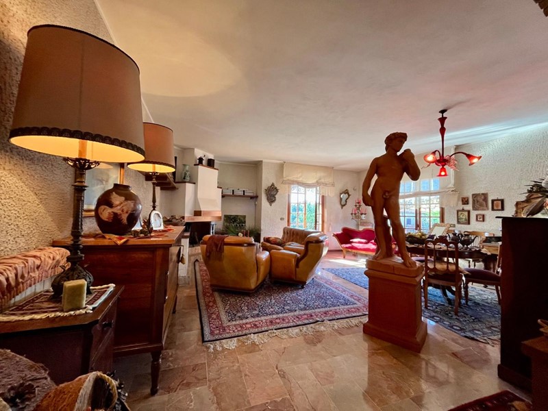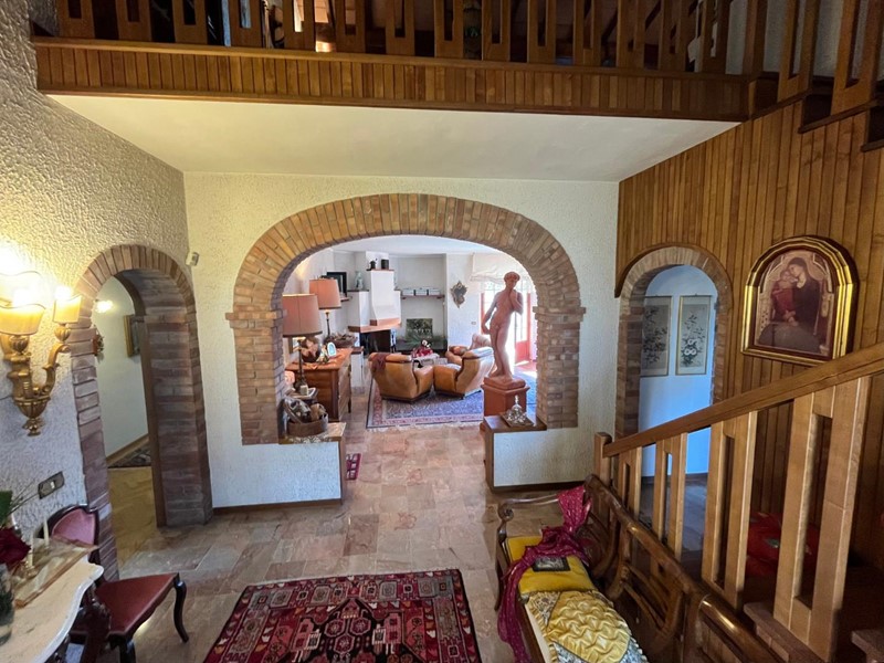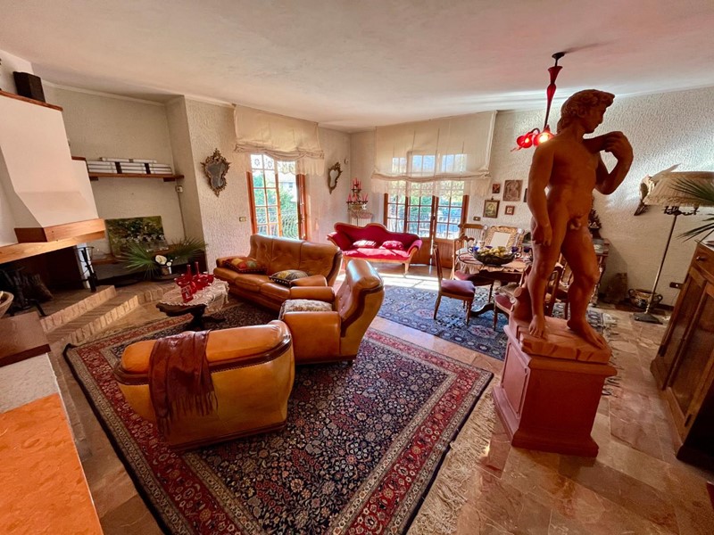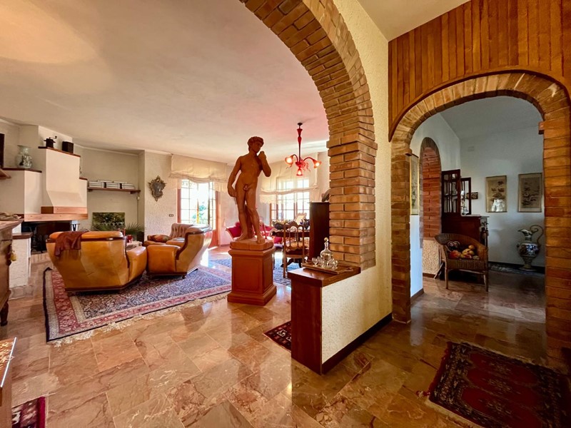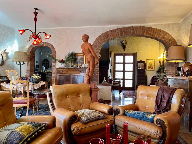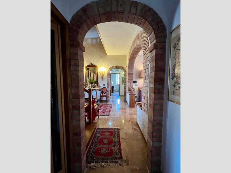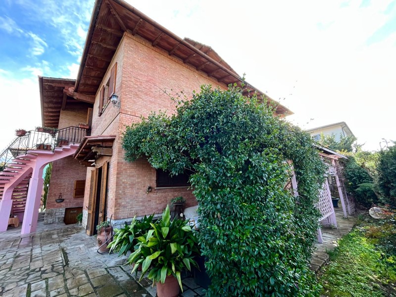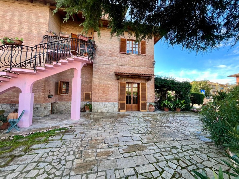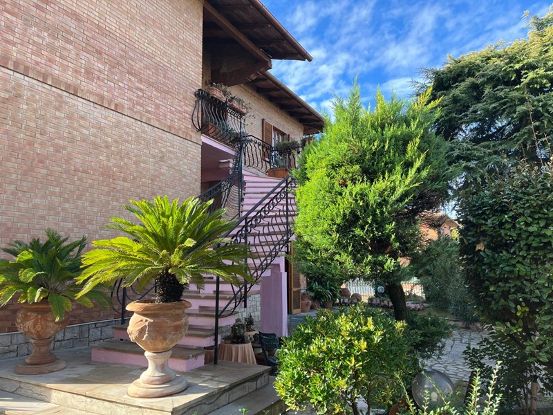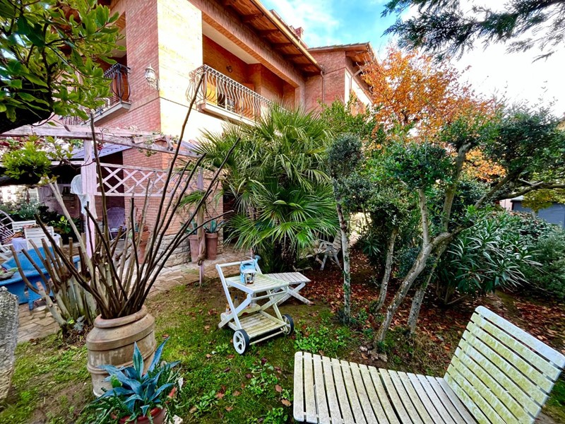 Bellissima villa singola su tre livelli e già predisposta internmente per due unità abitative indipendenti. Collocata nella zona residenziale di Asciano in posizione comoda per tutti i principali servizi, presenta un giardino privato attrezzato e molto curato di oltre 700 mq che circonda l'intero immobile. Internamente troviamo a piano terreno l'appartamento più piccolo di circa 70 mq con accesso alla zona taverna con cucina focolare ed altri spazi fruibili. Al piano primo l'appartmento principale con gransissimo salone con camino e accesso al terrazzo, tre camere, due bagni, cucina e ripostiglio. Al piano superiore grande zona mansardata con altezze completamente vivibili. Completano la proprietà un ampio garage.