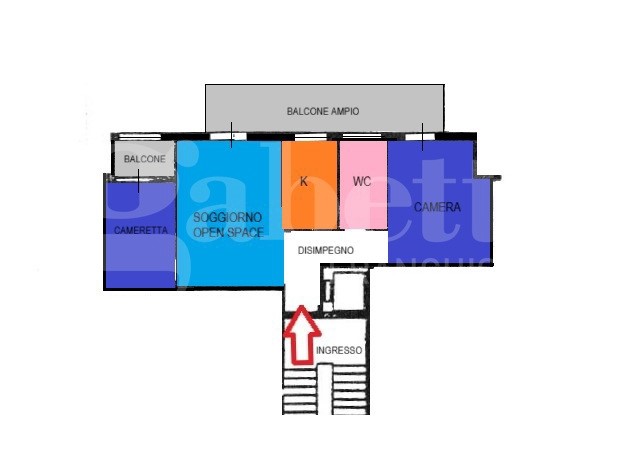 L'appartamento è posto al secondo piano, la disposizione interna è lineare e permette di avere ambienti luminosi e arieggiati.