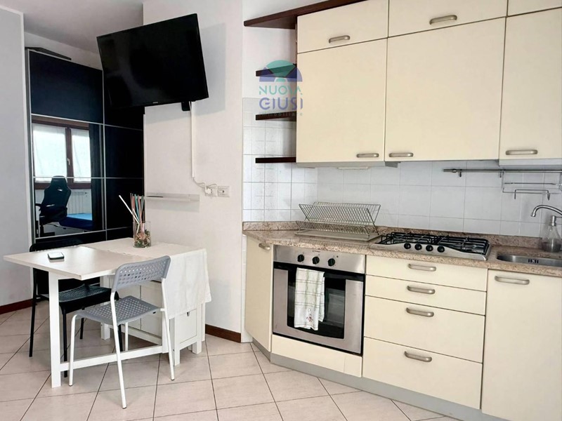 A due passi dal centro, in complesso di fine anni 90, interessante appartamento con doppio ingresso (sia condominiale che indipendente), composto da soggiorno/angolo cottura, disimpegno, camera matrimoniale, bagno, grande giardino esclusivo e ampio parcheggio libero adiacente.