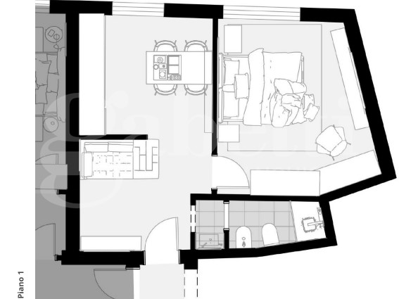 Proponiamo in vendita bilocale di 35 mq al piano rialzato, frutto di un'accurata operazione di frazionamento e completa ristrutturazione da impresa.