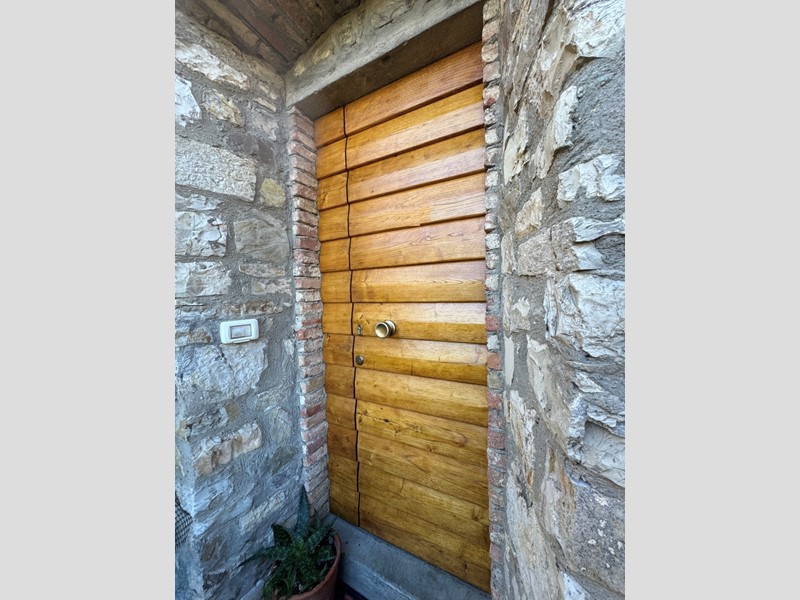 Entrando dall'antico cancello ci accoglie uno splendido salone con soffitti in legno e cotto, antiche nicchie in pietra e meravigliosi archi a mattoncini facciavista, collegato un ulteriore salotto con termocamino a legna, originariamente la cucina padronale della casa, che ci dona splendidi scorci sul borgo.