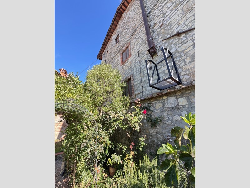 Una scala in cotto ci conduce all'attuale cucina con accesso al giardino privato, ideale per momenti di convivialità.