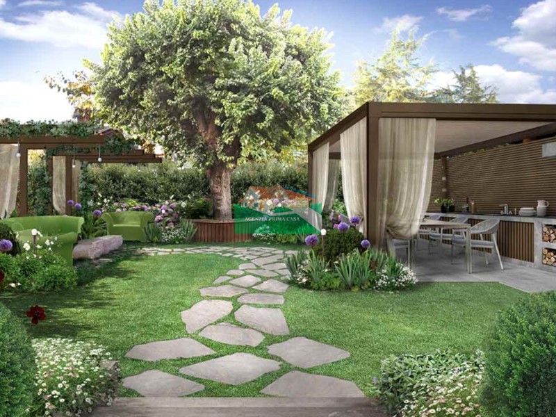 Ingresso con ampia e luminosa sala, cucina separata, primo bagno con doccia finestrato, secondo soggiorno, ripostiglio. Al primo piano 4 camere da letto matrimoniali, secondo bagno finestrato con doccia.