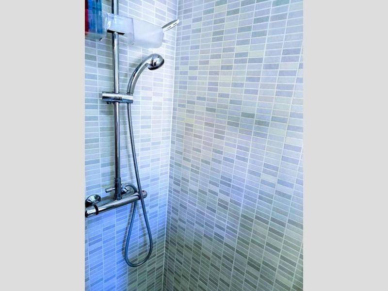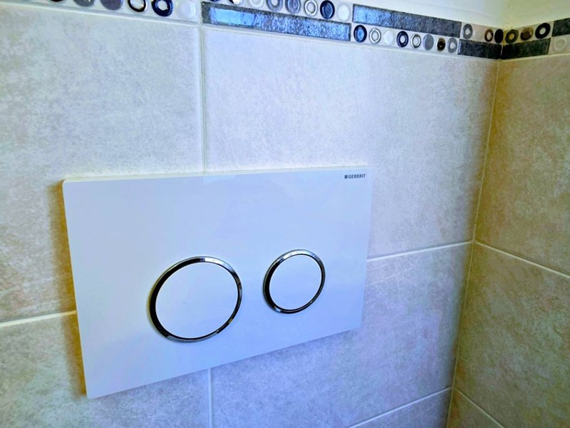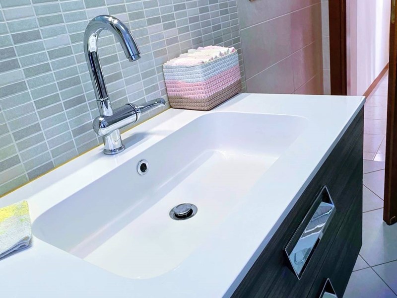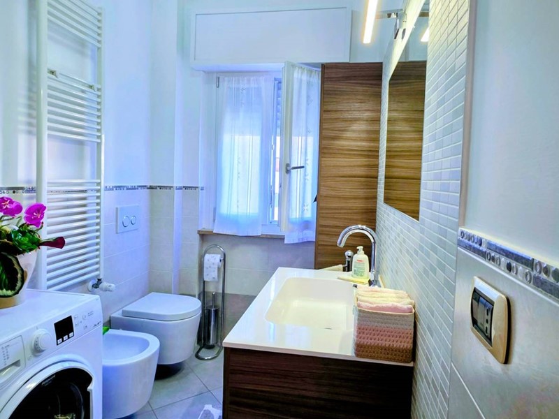 Impiantistica completamente autonoma ed a norma con caldaia esterna a condensazione, tende da sole nuove, impianto di climatizzazione Daikin, bagno con sanitari sospesi.