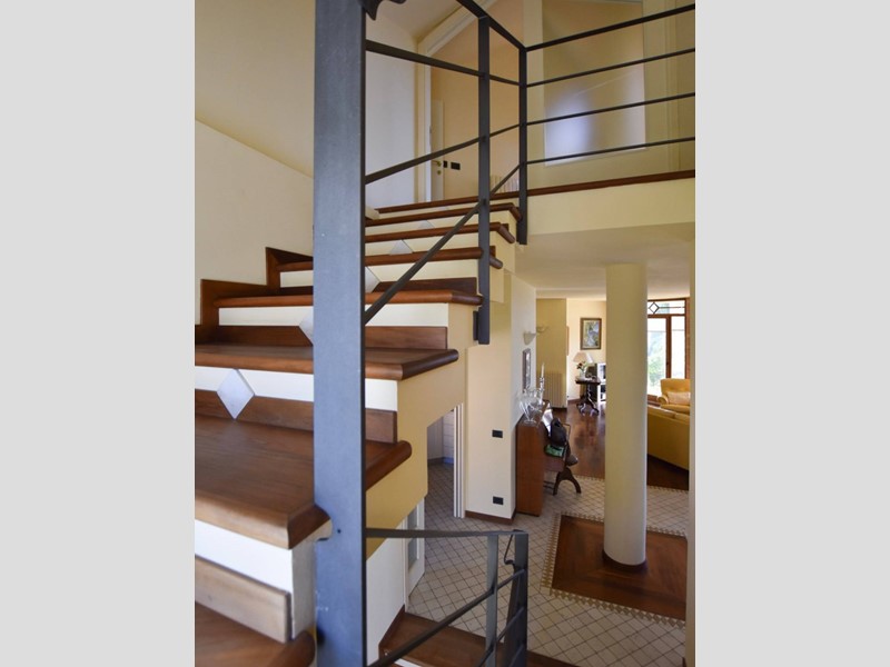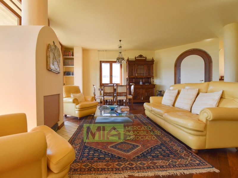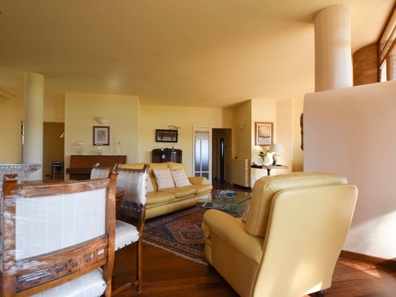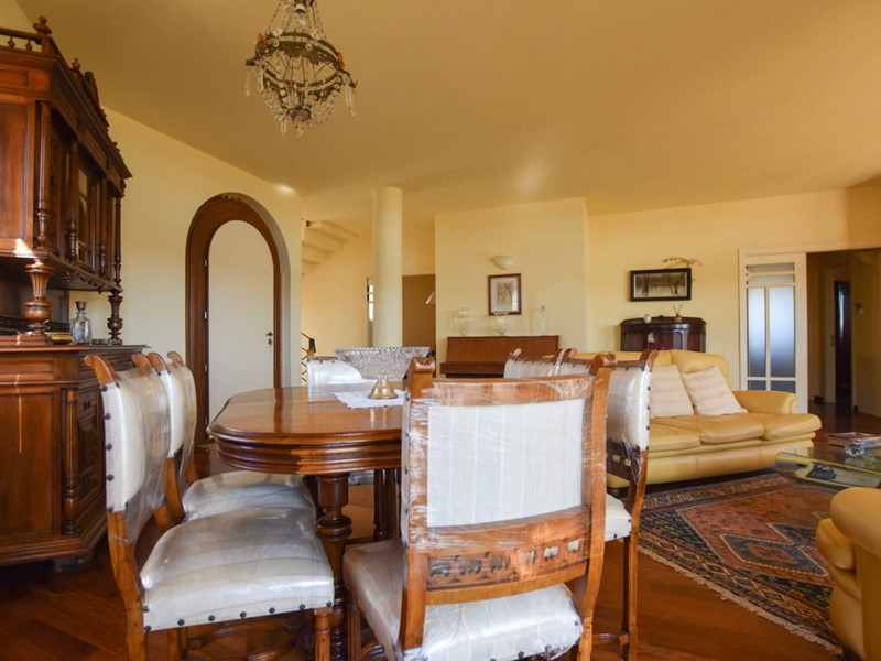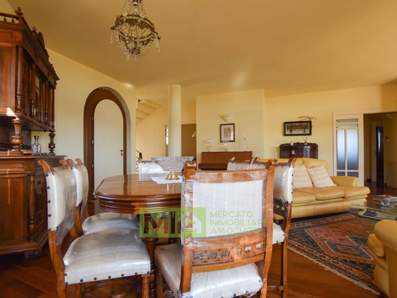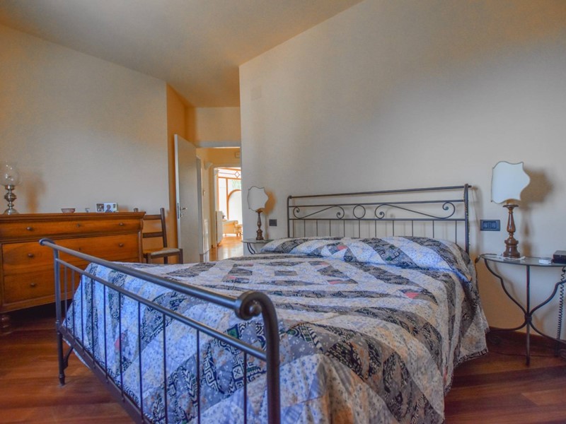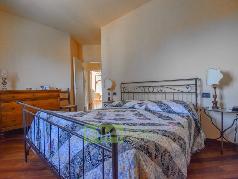 Il piano terra è il cuore della casa: un soggiorno di grande ampiezza, luminosissimo, con stufa/camino, grandi vetrate panoramiche e uscita sul lastrico esterno; accanto, la cucina abitabile. La zona notte, separata da porta scorrevole, comprende due camere matrimoniali (una con bagno ensuite e laltra con cabina armadio) e un ampio bagno padronale con vasca idromassaggio.