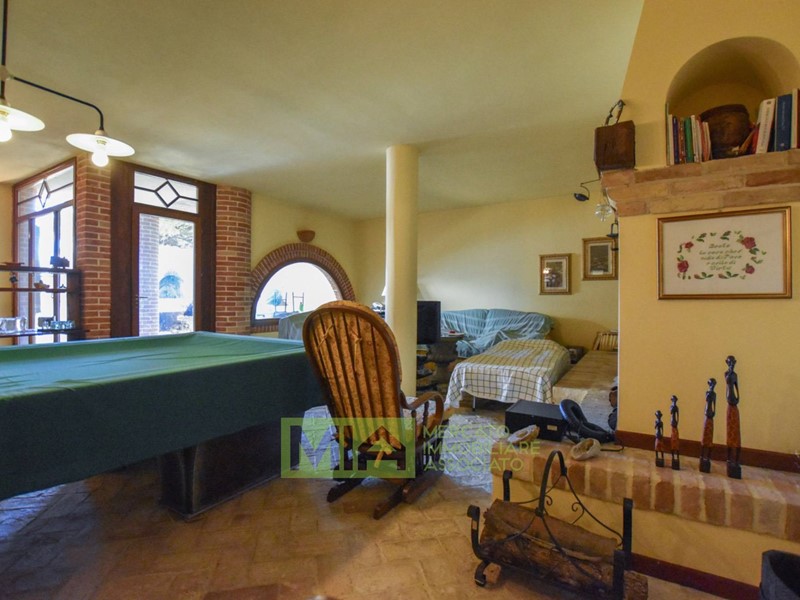 Il piano seminterrato ospita un affascinante open space rustico adibito a sala giochi con biliardo, camino, grande cucina con tavolo conviviale e vetrata che apre su uno spazio esterno con forno a legna. Sullo stesso livello un comodo garage di circa 35 mq.