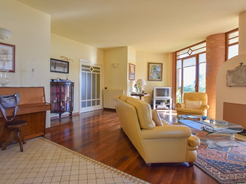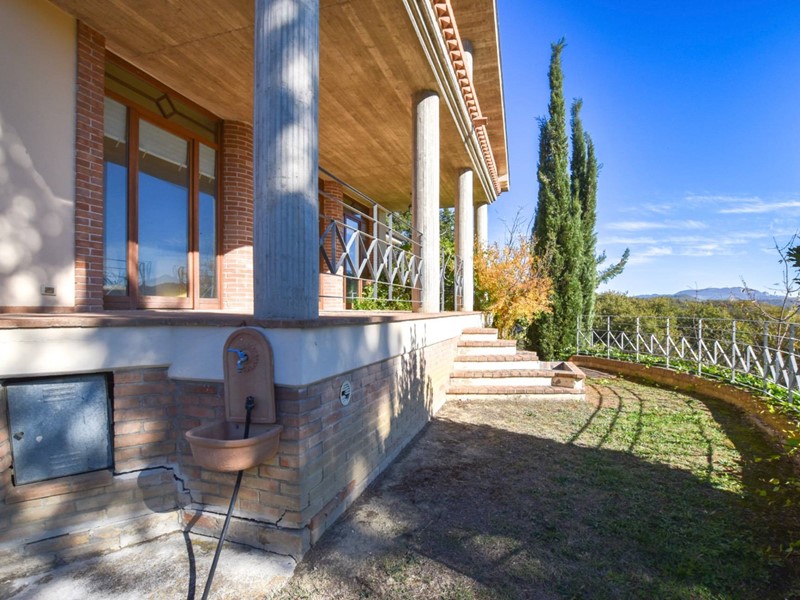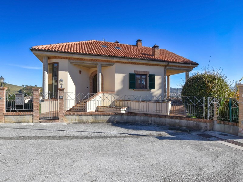 Ad Amandola, in località Villa Rustici, proponiamo in vendita una villa esclusiva di circa 240 mq su tre livelli, circondata da una corte privata di ca. 800 mq e da un contesto residenziale di sole ville con giardino. La casa si affaccia a est con una vista incantevole: in primo piano il centro storico di Amandola, poi un susseguirsi di colline che accompagna lo sguardo fino alla Montagna dei Fiori e ai Sibillini.