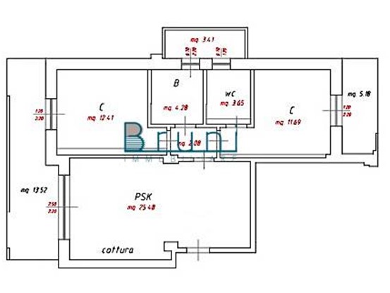 Composto da: ingresso su ampio soggiorno con cucina a vista, due camere da letto di matrimoniali, due bagni ad areazione forzata con cabina doccia, oltre a balconi di circa 21 mq.