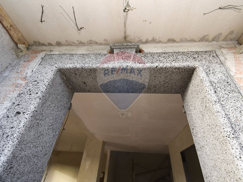 I prospetti di tutte le vie di accesso compreso i finestroni e lucernari sono rifiniti in pietra lavica .
