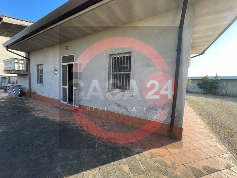 Tramite accesso carrabile e pedonale di esclusiva proprietà si accede ad un viale che ci conduce all'ingresso dell'abitazione, composta da soggiorno con cucina, due camere da letto, un disimpegno, un bagno e un ripostiglio; adiacente all'immobile troviamo un generoso giardino curato e piantumato, un box auto e due ripostigli.