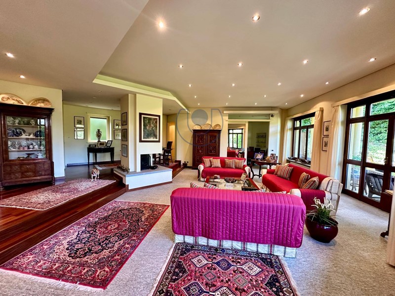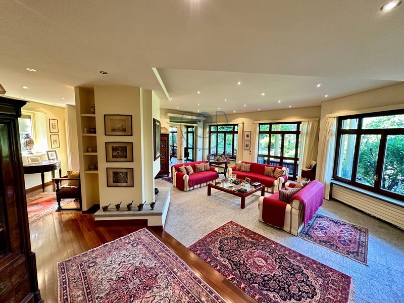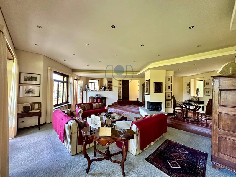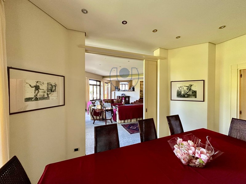 Piano terreno: ampio ingresso su salone vetrato con camino centrale scenografico, sala da pranzo, salotto rialzato e zona conversazione raccolta. Completa il livello una cucina abitabile, lavanderia, bagno di servizio, locale guardaroba e una raffinata dependance interna con camera matrimoniale, cucinotto e bagno.