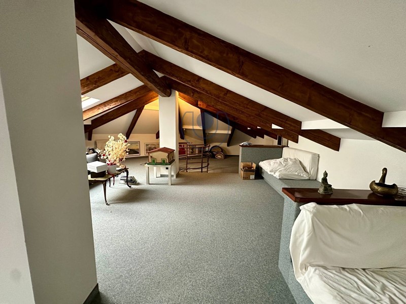 Mansarda: locale open space rivestito in moquette con salotto, angolo bar, bagno e zona notte.