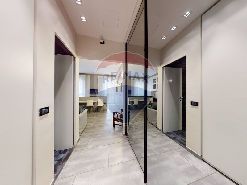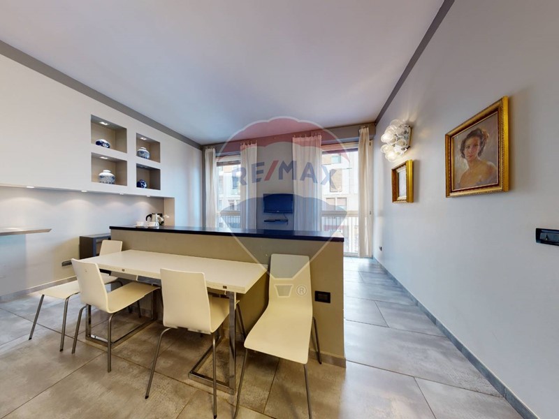 La soluzione si presenta ristrutturata e arredata completa di porta blindata, allarme, riscaldamento centralizzato, aria condizionata canalizzata a soffitto, tapparelle automatizzate, piano cottura a induzione, forno, lavastoviglie, lavatrice, divano, letto matrimoniale e tv.