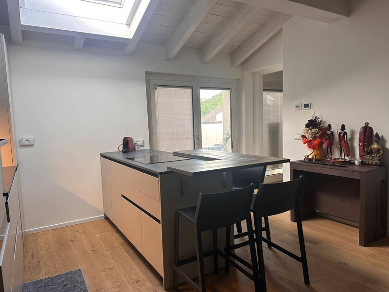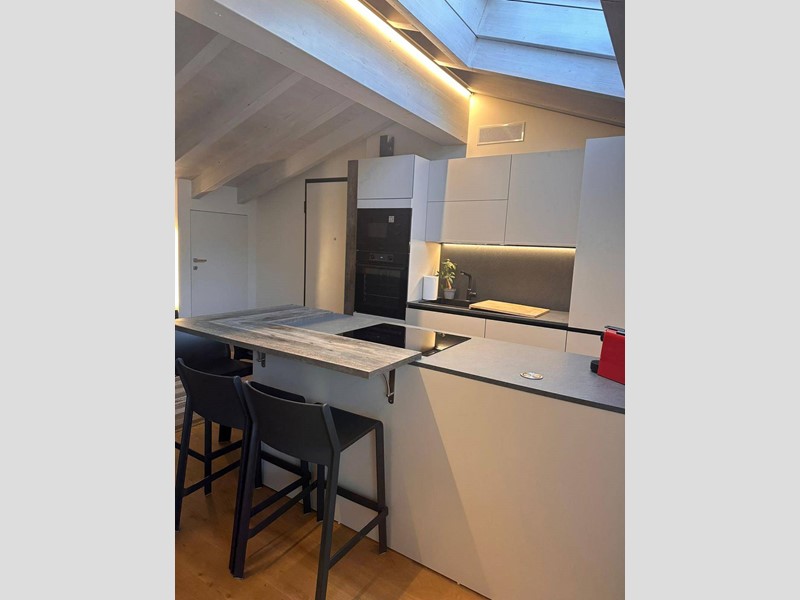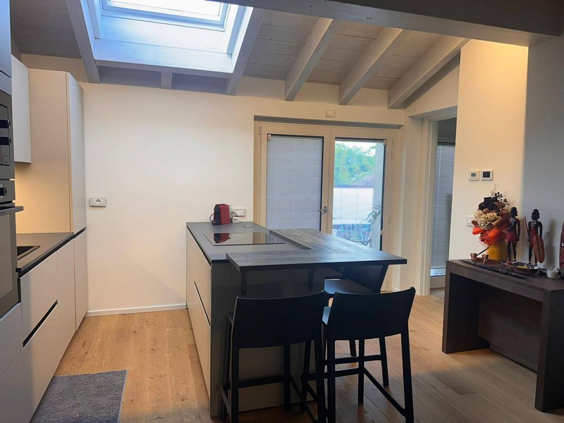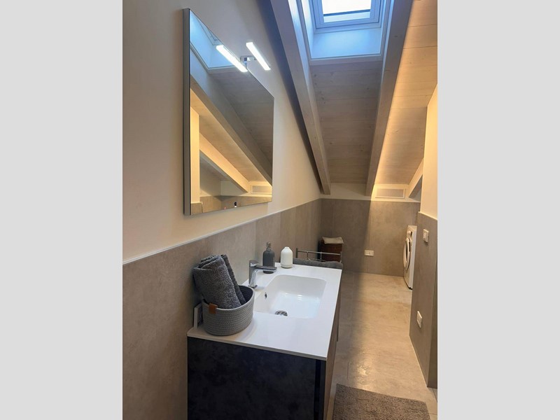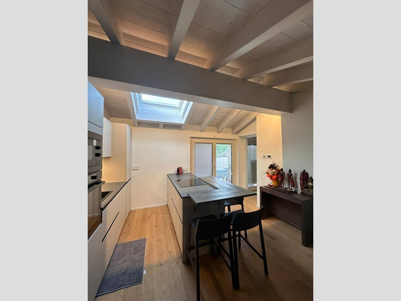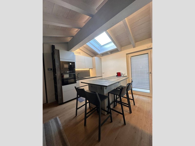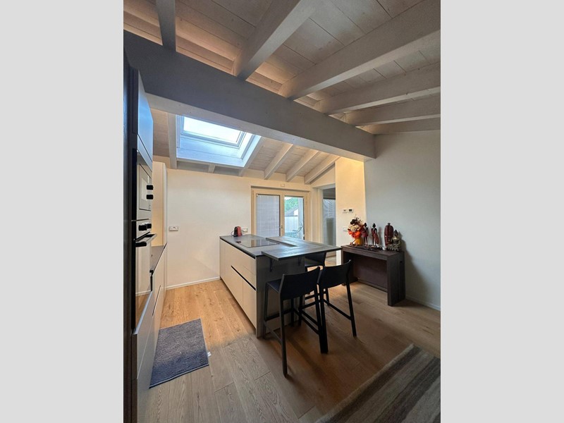 Finiture: L'appartamento è caratterizzato da una pavimentazione interamente in parquet e da travi a vista sbiancate, che ne esaltano la luminosità.