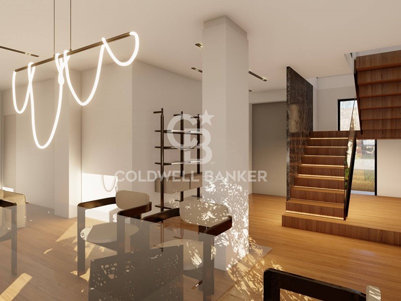 Con 200 mq calpestabili distribuiti su due livelli, gli interni sono luminosi e spaziosi grazie alle ampie finestre che inondano di luce naturale ogni ambiente.
