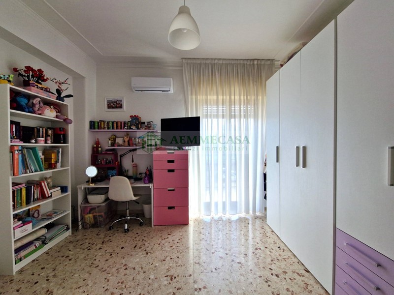 Luminoso con tripla esposizione , si estende su una superficie interna calpestabile di circa 110 mq ed è composto da: ampio ingresso, soggiorno con doppia esposizione, cucina abitabile , due camere da letto ,cameretta , bagno con doccia, ripostiglio e lavanderia con wc e tre balconi.