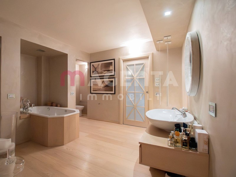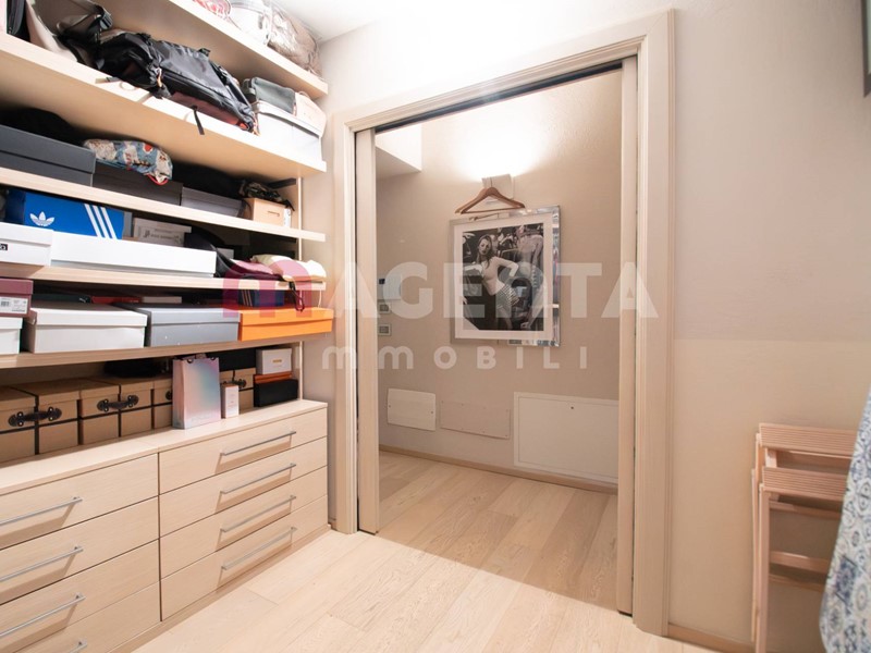 Allingresso troviamo un ambiente attualmente adibito a cabina armadio, facilmente trasformabile in una seconda camera da letto; a seguire, un ampio bagno padronale dotato di vasca idromassaggio e box doccia walk-in, oltre alla spaziosa e luminosa camera matrimoniale.
