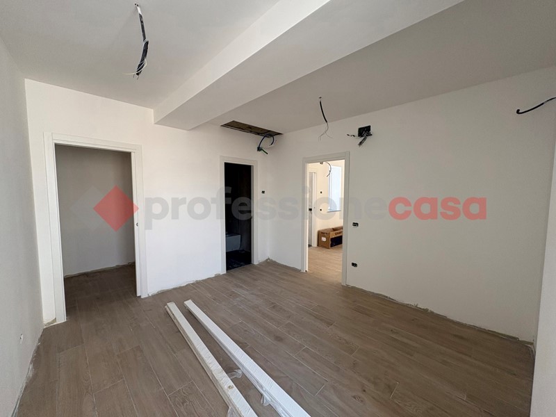 L'appartamento è composto da un accogliente ingresso che conduce al luminoso salone con cucina a vista, creando un ambiente spazioso e accogliente. La zona giorno è completata da un bagno di servizio. Attraverso un corridoio si accede alla ampia camera da letto matrimoniale, dotata di bagno privato e cabina armadio, offrendo privacy e comfort.