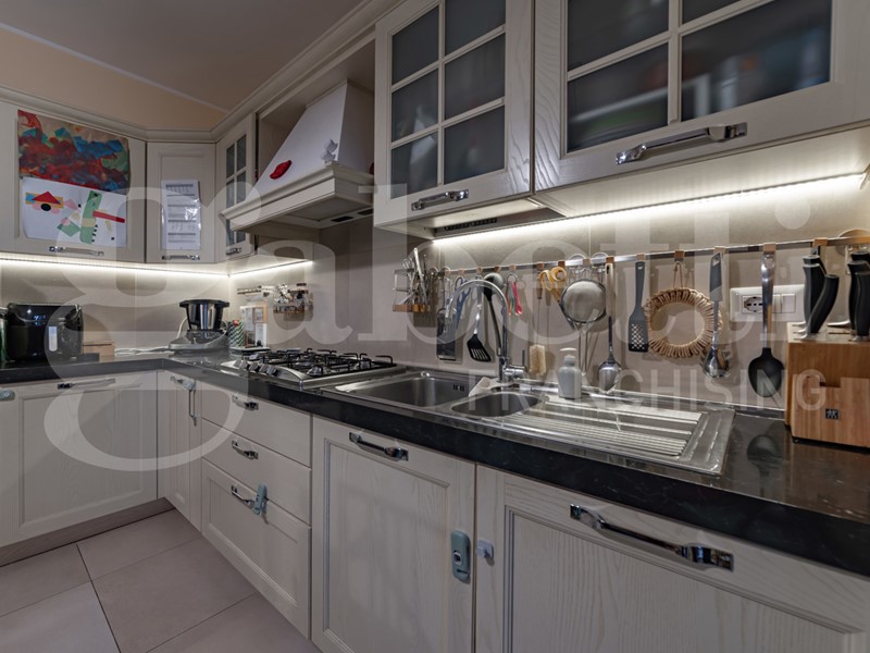 Completano la soluzione il box di 25 mq, infissi di nuova generazione, antifurto perimetrico e volumetrico e aria condizionata.