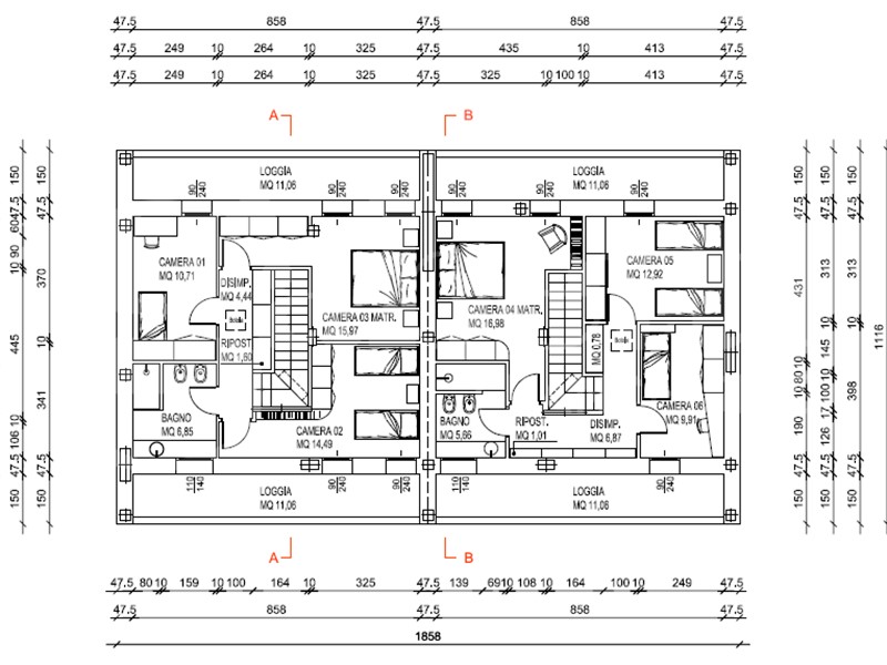 Il lotto su cui si sviluppa l'intero edificio è di mq 1.600.