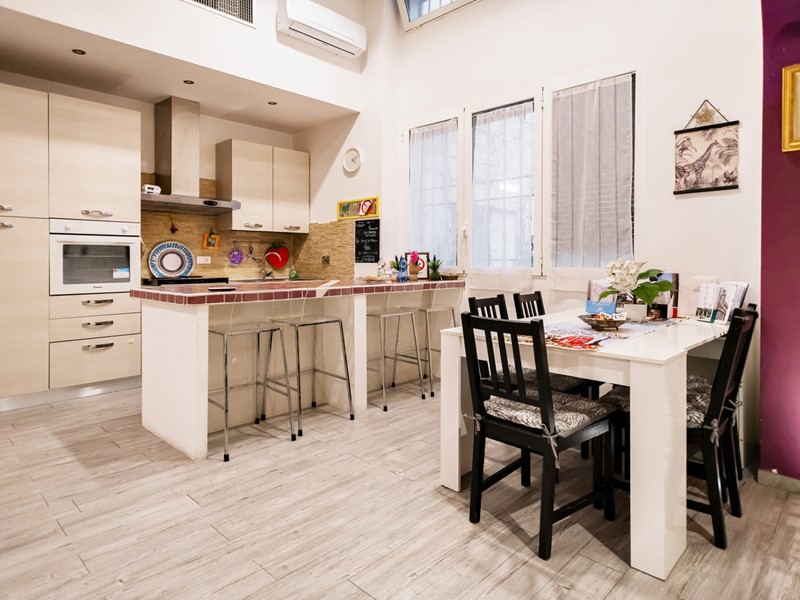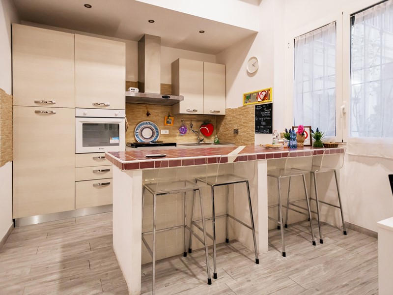 L'appartamento è stato completamente ristrutturato con l'utilizzo di pregevoli finiture che hanno conferito all'immobile uno charme moderno dal gusto raffinato, e viene affittato completamente arredato. La pavimentazione è interamente realizzata in parquet, mentre nei servizi, dotati di comodi box doccia, si è scelto l'utilizzo di un rivestimento in ceramica.