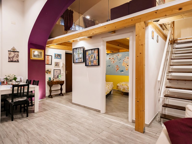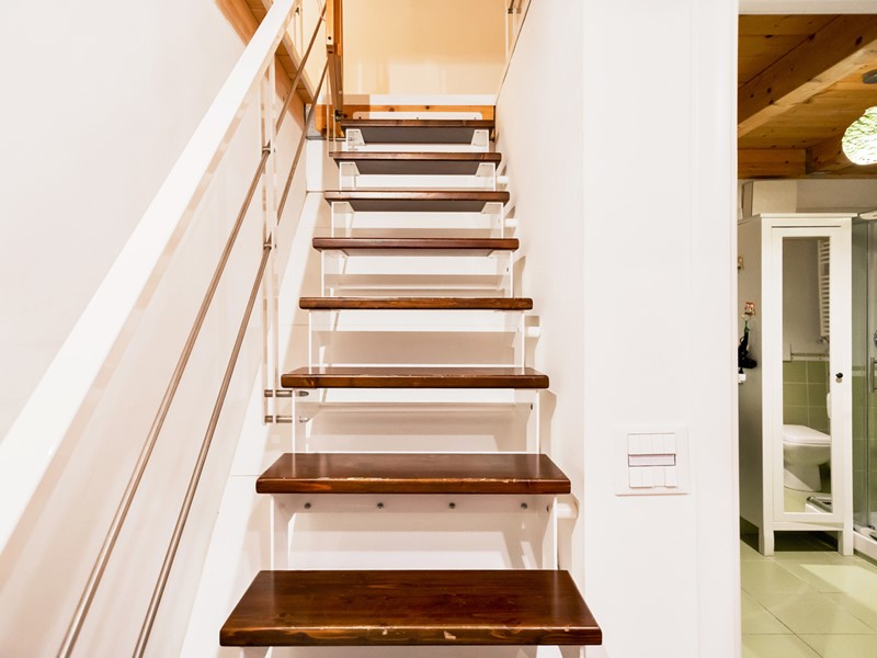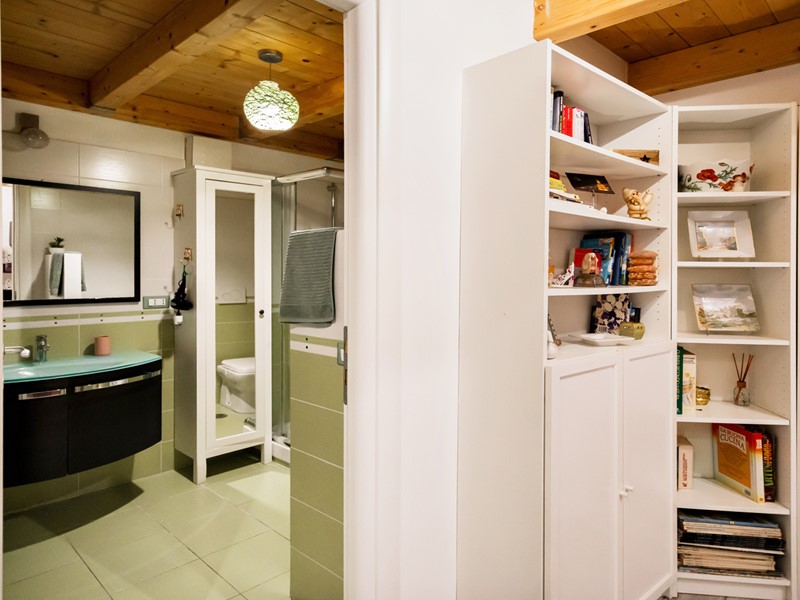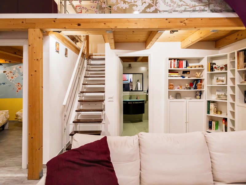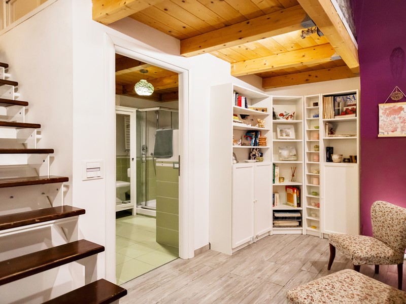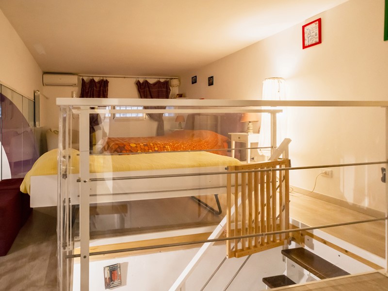 Attraverso una comoda ed elegante scala interna, al piano superiore soppacato perfettametne vivibile grazie alla nostevole altezza degli ambienti, si trovano una seconda ampia camera da letto con comoda cabina armadio ed un secondo servizio.