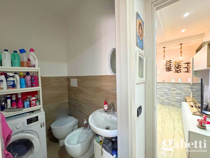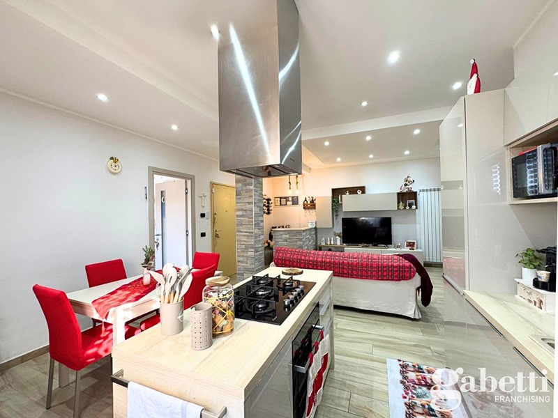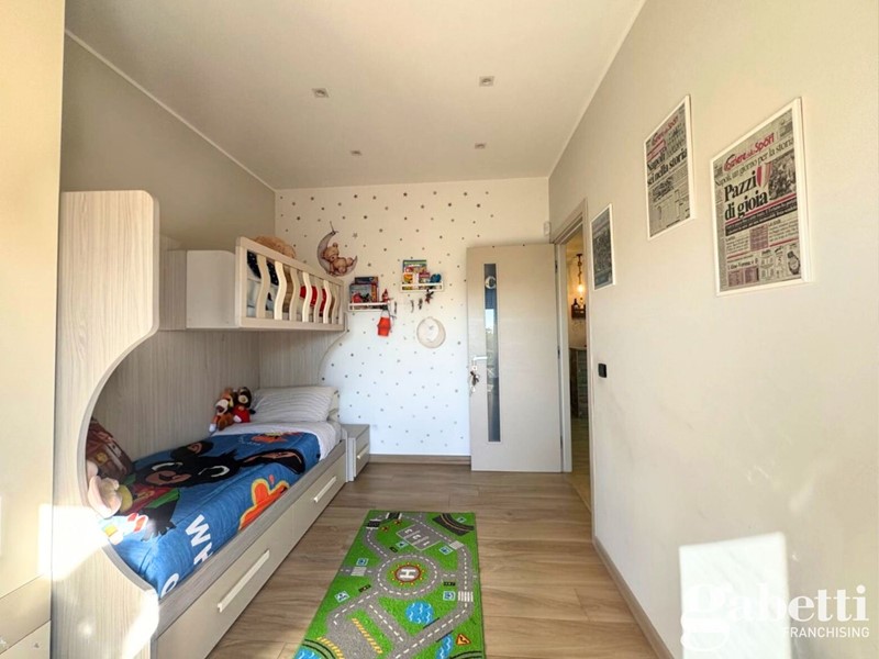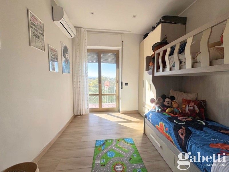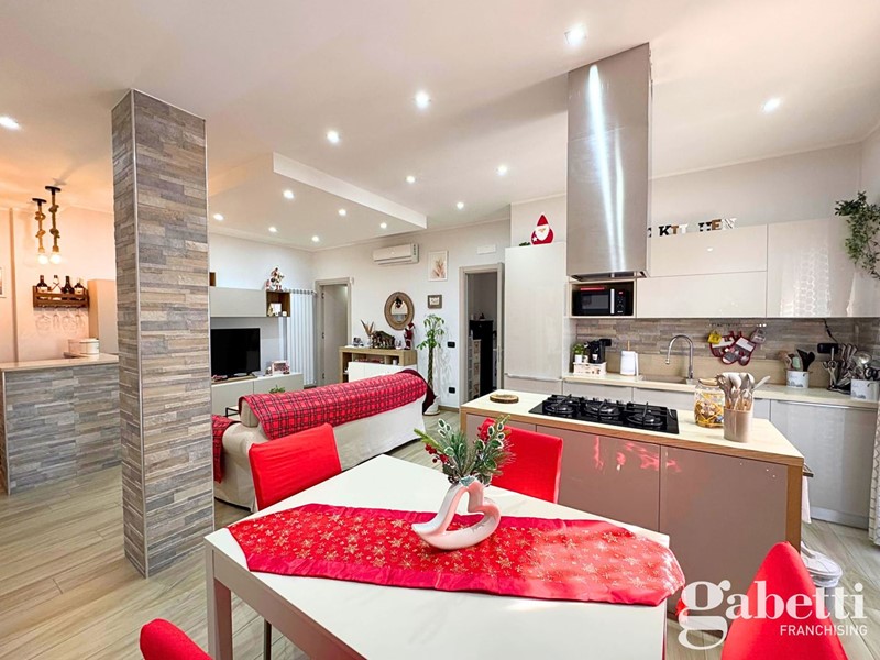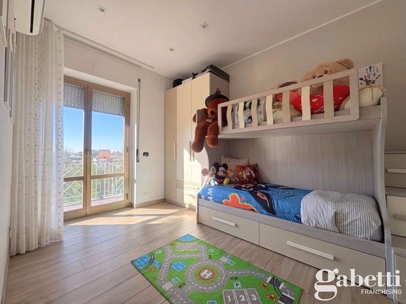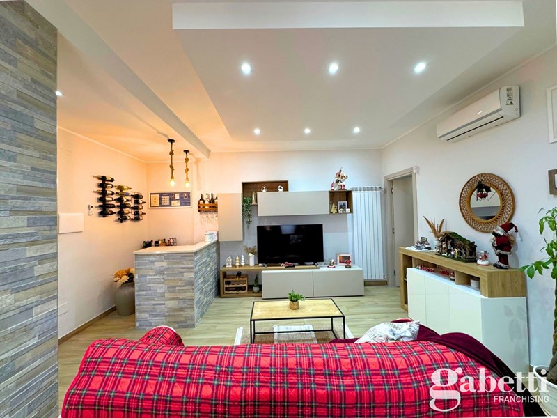 L'immobile, ben distribuito e rifinito con cura, è di 3 vani + 2 acc. ri ed è composto da: ampio open space con zona living e cucina, camera da letto con cabina armadio, cameretta e doppio servizio.