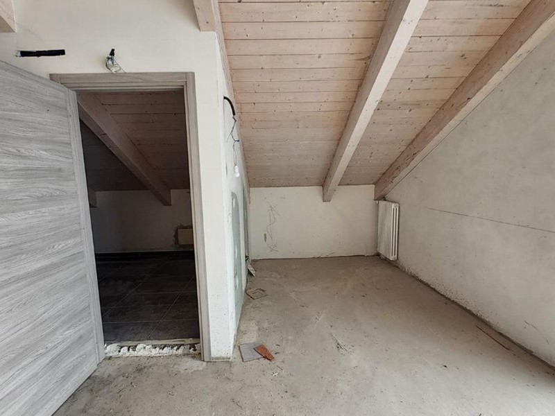 Villetta a schiera a Caselette (TO), Strada dei Comuni 2 La villetta in asta è sito in zona periferica ma ben collegata al centro cittadino. Ha una superficie commerciale di 135 mq circa. L'appartamento ha accesso diretto dalla corte comune ad altri subalteri ed è costituita da ingresso/soggiorno con angolo cottura, disimpegno, bagno e camera, al piano primo mansardato camera e bagno. Le finiture presenti sono pavimenti al grezzo (solo massetto) tranne che nei locali bagno pavimentati con piastrelle in ceramica così come i rivestimenti, pareti intonacate, infissi in legno con doppio vetro. L’unità è dotata dei principali impianti tecnologici; il riscaldamento e la produzione di acqua calda sanitaria è del tipo centralizzato gestito da caldaia in locale centrale termica Categoria F/3