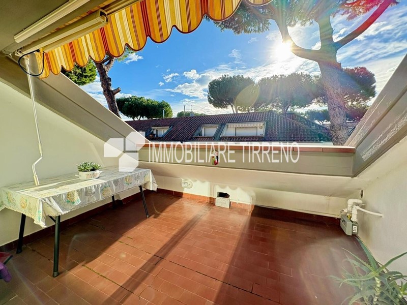 Marina di Massa - A soli 150 metri dal mare in bel complesso residenziale con grande parco alberato, proponiamo la vendita di un grazioso appartamento completamente ristrutturato con due belle terrazze abitabili. Completamente arredato, dotato di aria climatizzata e servizio montascale esclusivo, internamente si compone di ingresso-soggiorno con accesso alla terrazza, cucinotto con finestra, due camere da letto, bagno, altra terrazza. OTTIMO INVESTIMENTO.