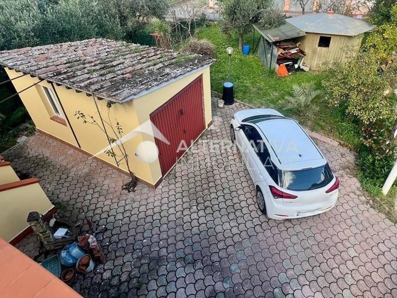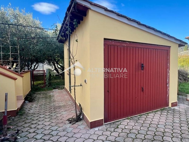 Da cancello carrabile si accede allo spazio esterno recintato di circa 230 mq, in parte a verde, in parte resede, dove insistono un ampio garage di circa 40 mq e un altro locale pluriuso.