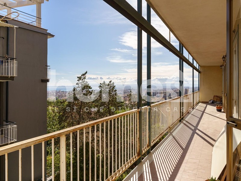 L'appartamento in buone condizioni, presenta due ingressi con porta blindata, gli spazi sono ben distribuiti, ed è composto da quattro camere, salone doppio, un'ampia cucina abitabile con annessa veranda regolarmente catastata, tre bagni, lavanderia, ripostiglio ed un balcone terrazzato di circa 23 mq, dal quale si può godere di una vista mare mozzafiato.