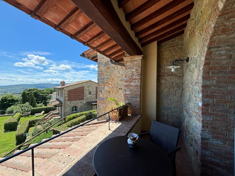CHIANNI; posto in un contesto panoramico mozzafiato, questo appartamento fà parte di un complesso di recente costruzione in stile rustico Toscano e curato nei minimi particolari. All’interno di questo borgo vi è una piscina con terrazzo solarium condominiale e un bellissimo giardino.