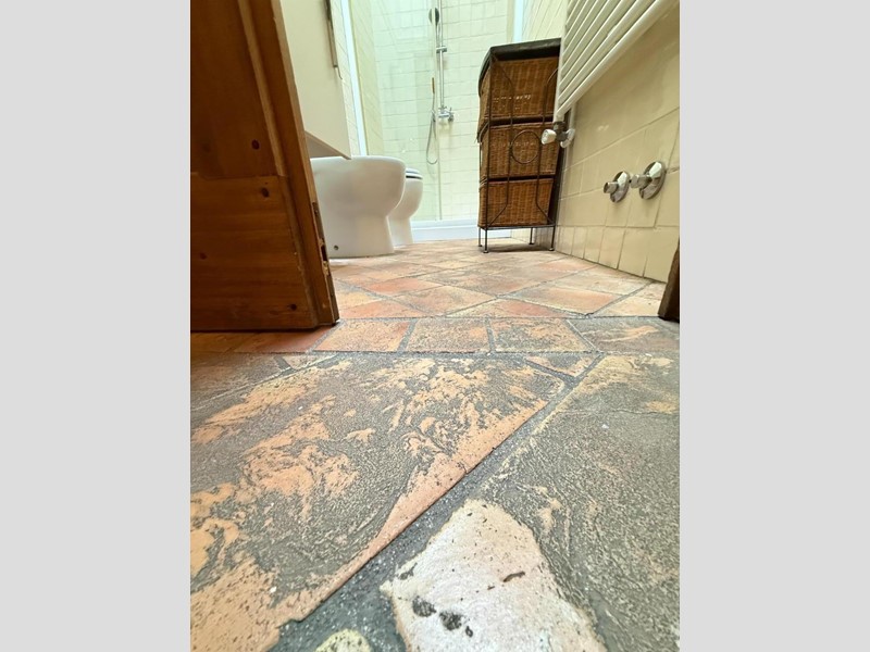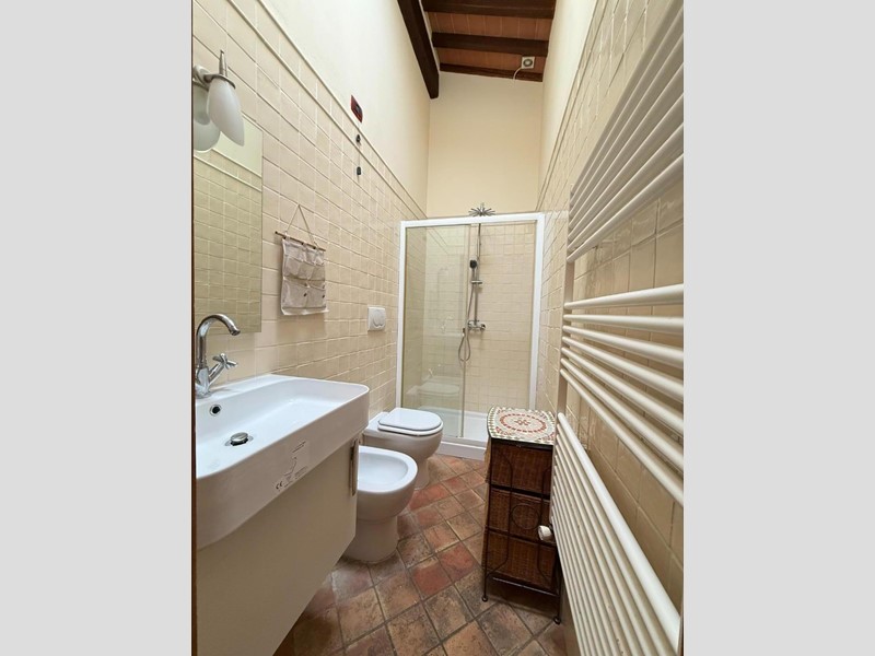 Passando dal disimpegno eccoci nel bagno con doccia e poi nella camera matrimoniale.