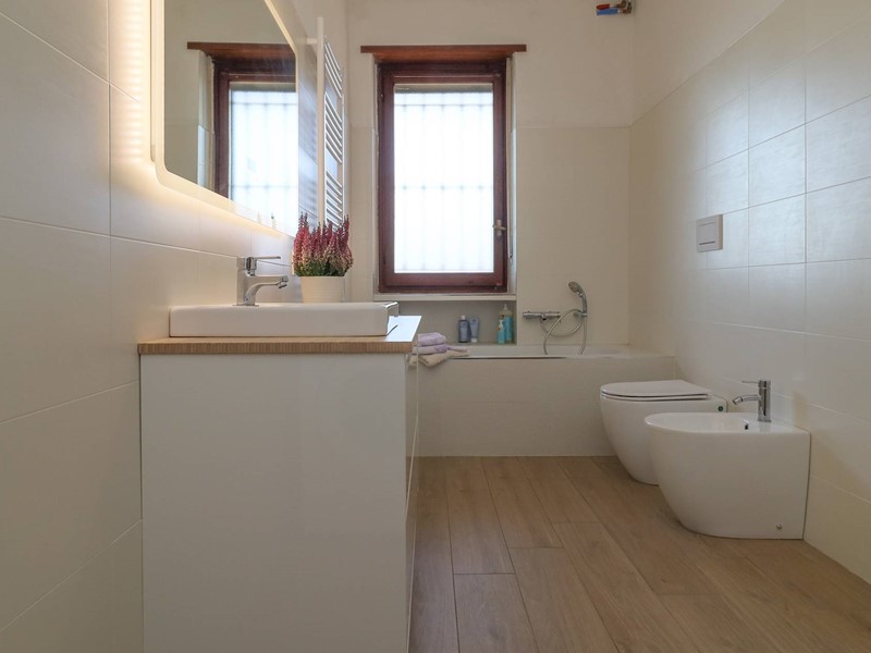 La proprietà comprende un garage, ed un posto auto coperto e gode di un terreno di pertinenza di oltre 2.500 mq che offre grandi potenzialità. (giardino, piscina, orto, ecc.)