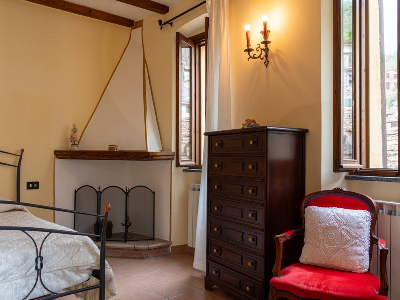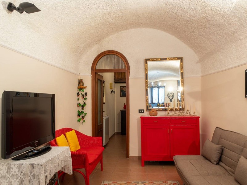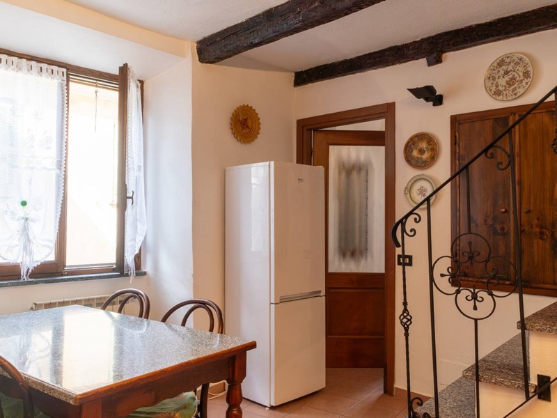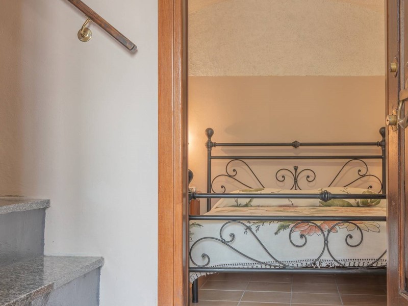 Al piano primo, sono disposti l' ampio soggiorno, una cucina abitabile completamante attrezzata e dotata di forno a legna, una camera da letto ed un bagno. Al secondo ed ultimo piano troviamo un salottino, una camera padronale con caminetto, terrazzo con affaccio panoramico e bagno privato.