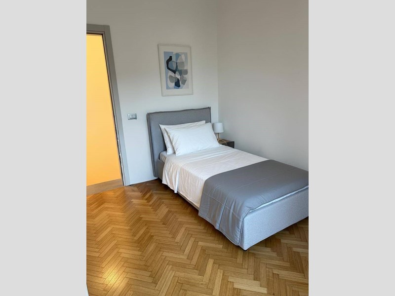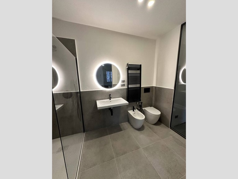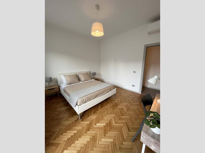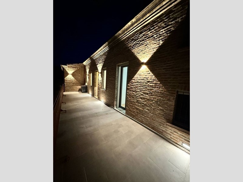 Sito al piano primo senza ascensore, nella splendida Via Cosme' Tura, appartamento di nuova ristrutturazione di circa 160 mq composto da ingresso, salone open space con zona pranzo e cucina a vista. Dal salone si accede al terrazzo di proprietà di circa mq 30 con affaccio sul giardino condominiale.