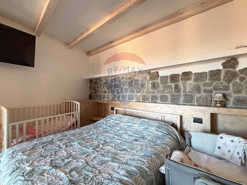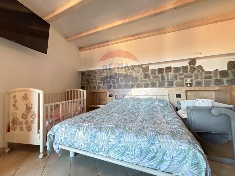 Un piccolo disimpegno conduce al primo bagno e poi nella zona notte composta da un secondo bagno di servizio (da ultimare) e dalla seconda camera matrimoniale.