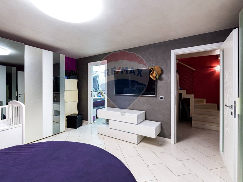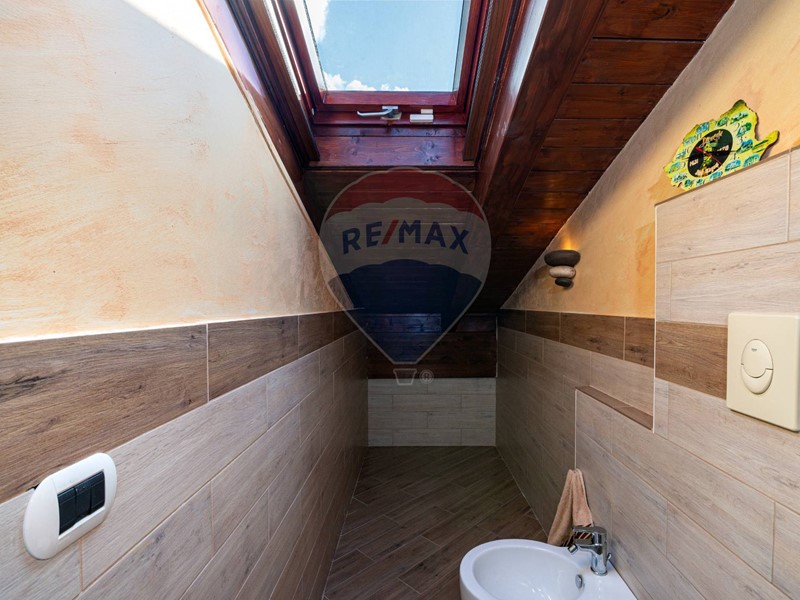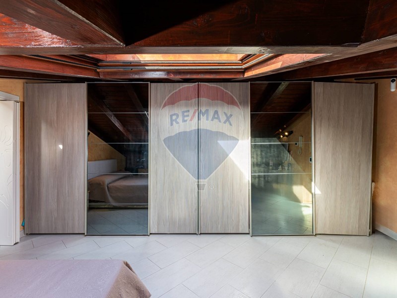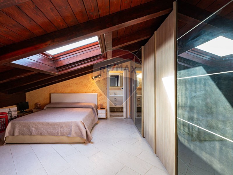 Il piano superiore è dedicato alla zona notte padronale, un ambiente riservato e intimo che ospita una camera matrimoniale con bagno privato. Sia la camera che il bagno sono illuminati e ventilati da due velux distinti, soluzione che assicura unilluminazione naturale costante e unaerazione ottimale. La camera dispone inoltre dello spazio adatto per ospitare un armadio a muro fino a sei ante, dettaglio che contribuisce a definire un ambiente elegante, pratico e perfettamente organizzato.