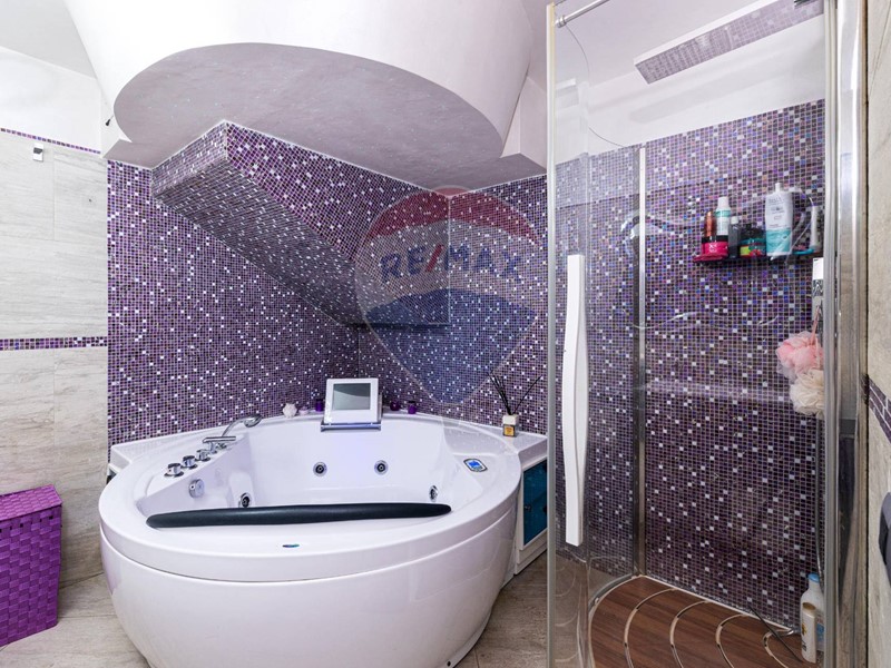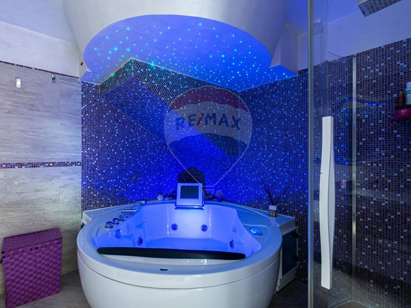 Il livello inferiore della villa è stato progettato con la stessa attenzione ai dettagli: un disimpegno conduce a due camere matrimoniali di 18 mq e 22 mq, entrambe dotate di bagno en suite. La camera più grande, la matrimoniale da 22 mq, è ulteriormente valorizzata dalla presenza di una vasca idromassaggio interna con cromoterapia, integrata allinterno dellambiente in modo elegante e funzionale, creando uno spazio dedicato al relax privato e al benessere quotidiano.
