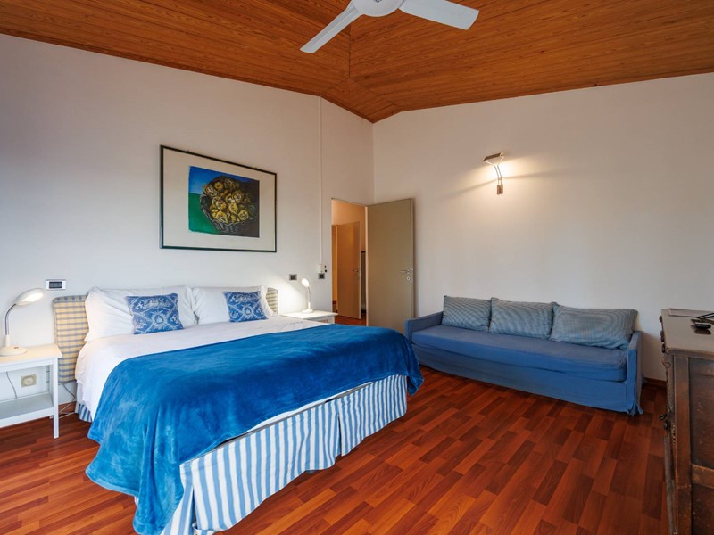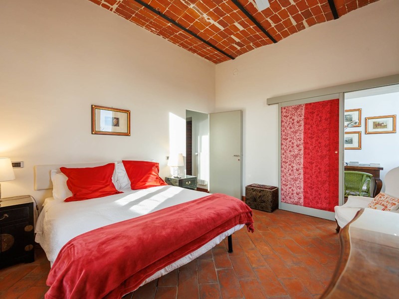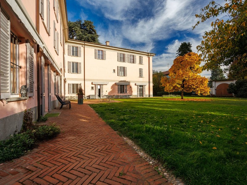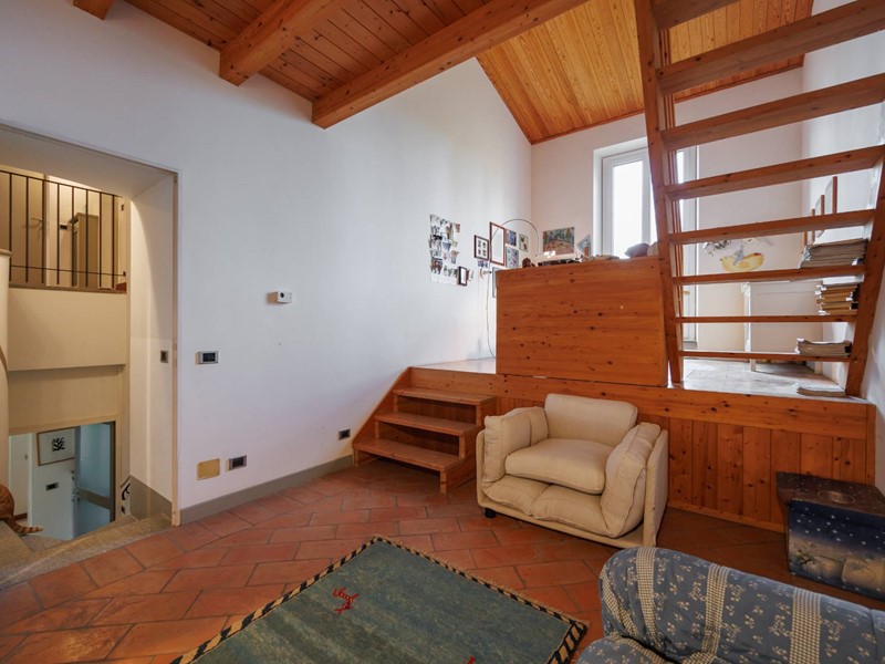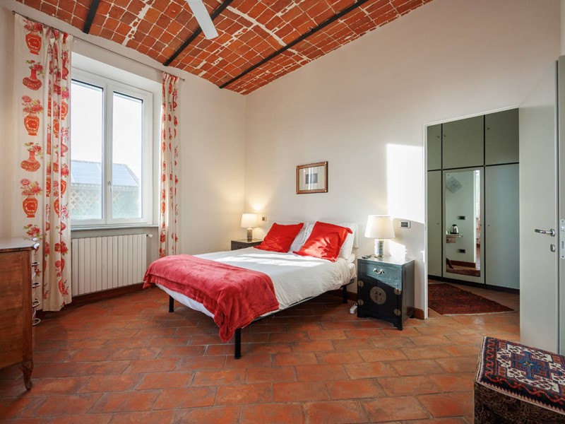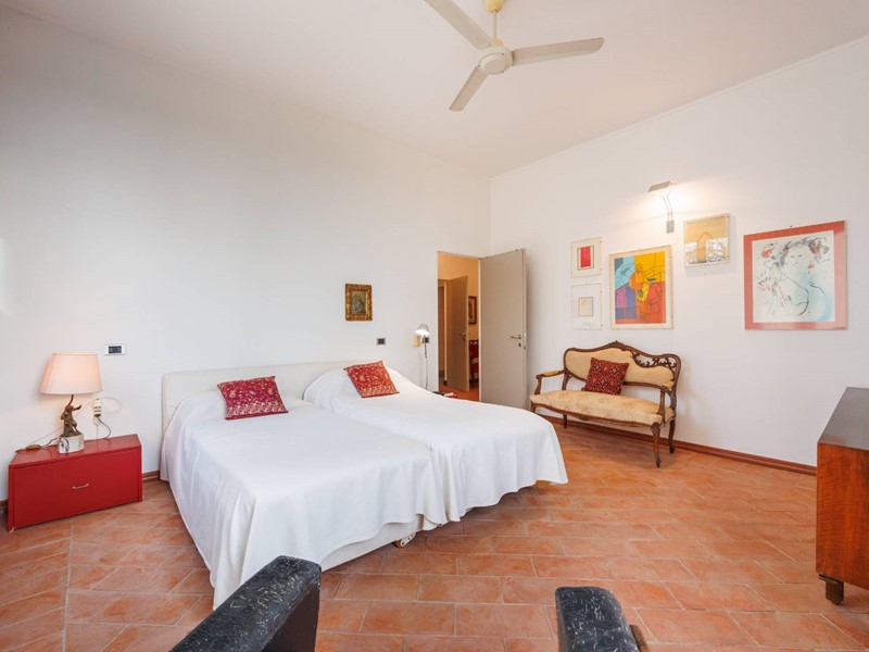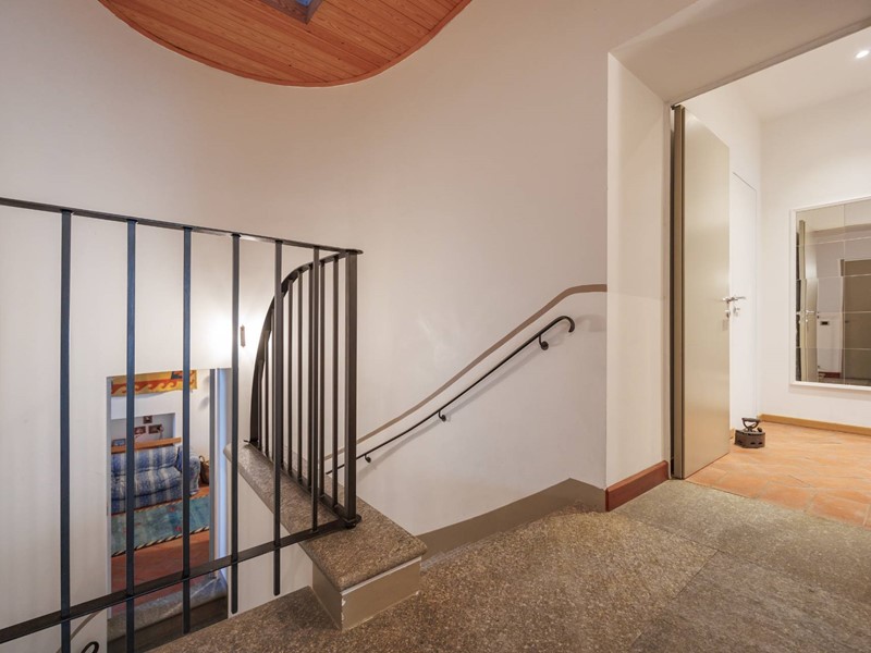 Labitazione, disposta su ampi volumi e caratterizzata da soffitti alti in mattone e affacci sul parco, è composta da ingresso, tre salotti con camino, una cucina abitabile, cinque camere da letto, uno studio soppalcato, cinque bagni, una cantina e lavanderia.