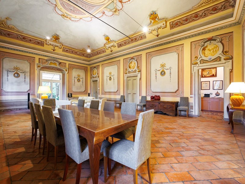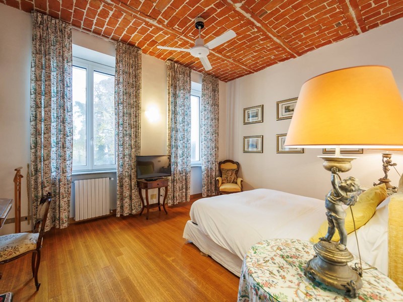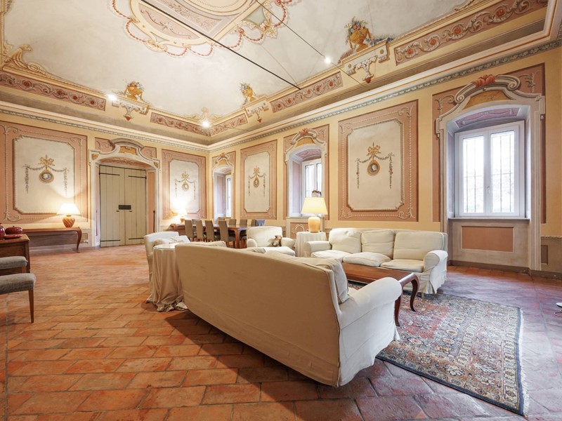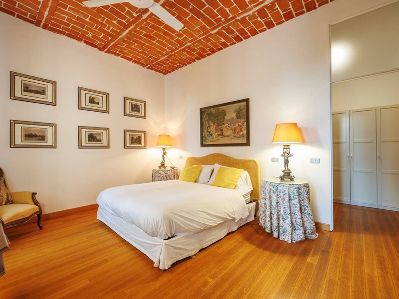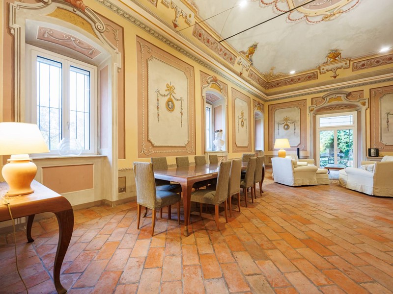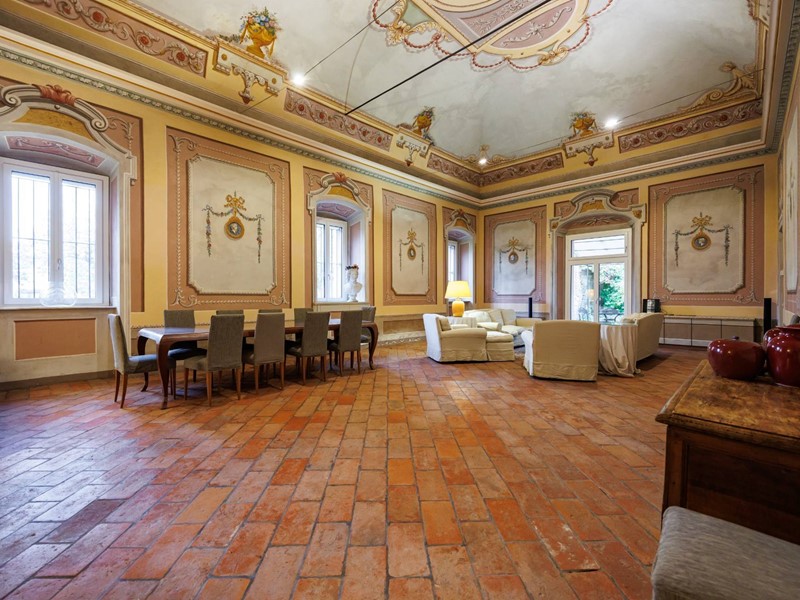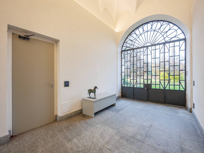 Labitazione, disposta su ampi volumi e caratterizzata da soffitti alti in mattone e affacci sul parco, è composta da ingresso, un vasto salone storico con soffitti affrescati unico nel suo genere, salotto con camino, una cucina abitabile, quattro camere da letto, uno studio, quattro bagni, una cantina e lavanderia.