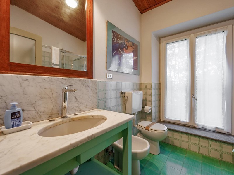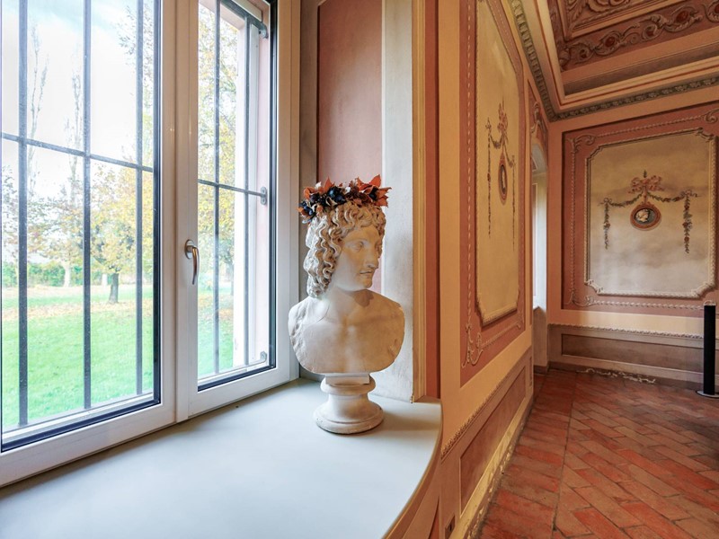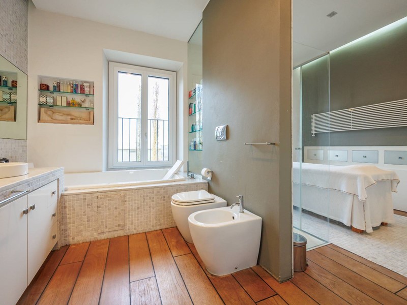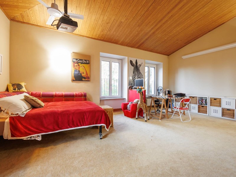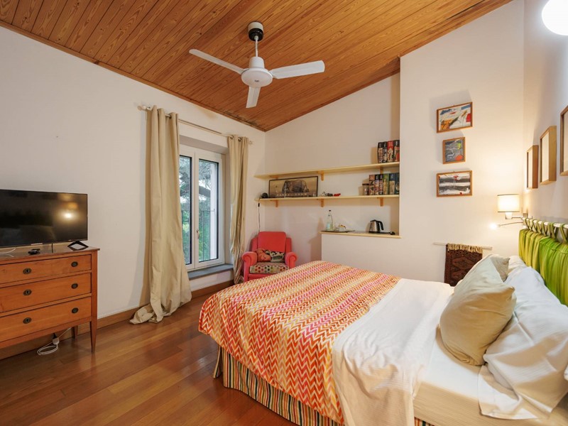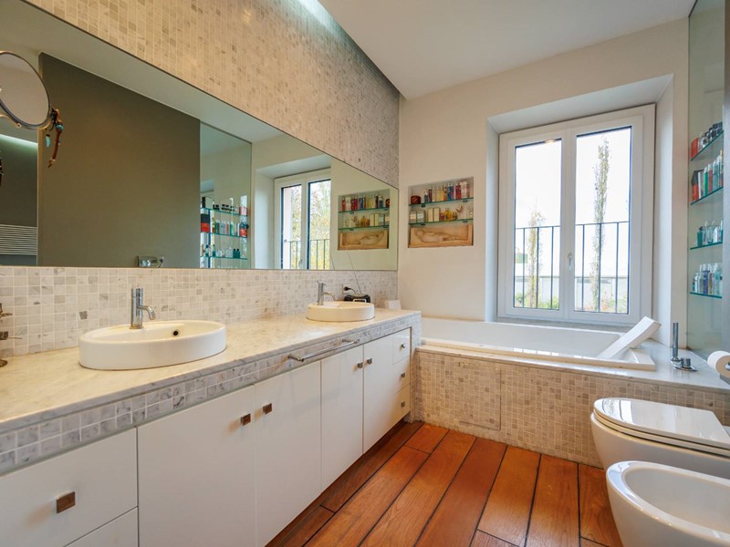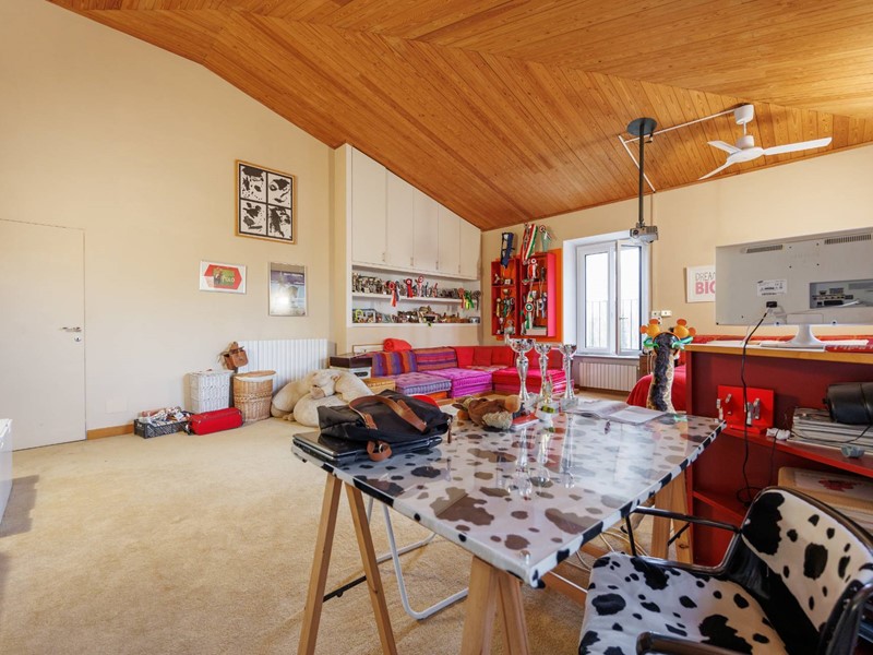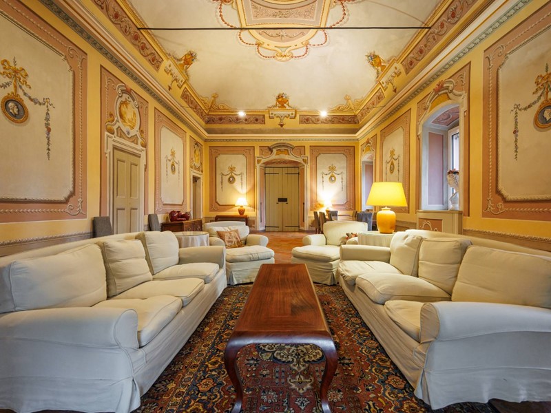 Labitazione, disposta su ampi volumi e caratterizzata da soffitti alti in mattone e affacci sul parco, è composta da ingresso, un vasto salone storico con soffitti affrescati unico nel suo genere, salotto con camino, una cucina abitabile, quattro camere da letto, uno studio, quattro bagni, una cantina e lavanderia.