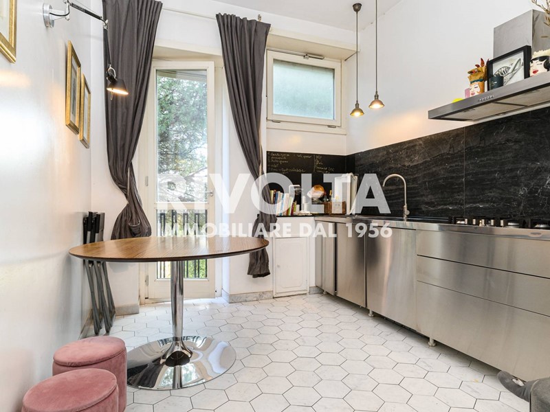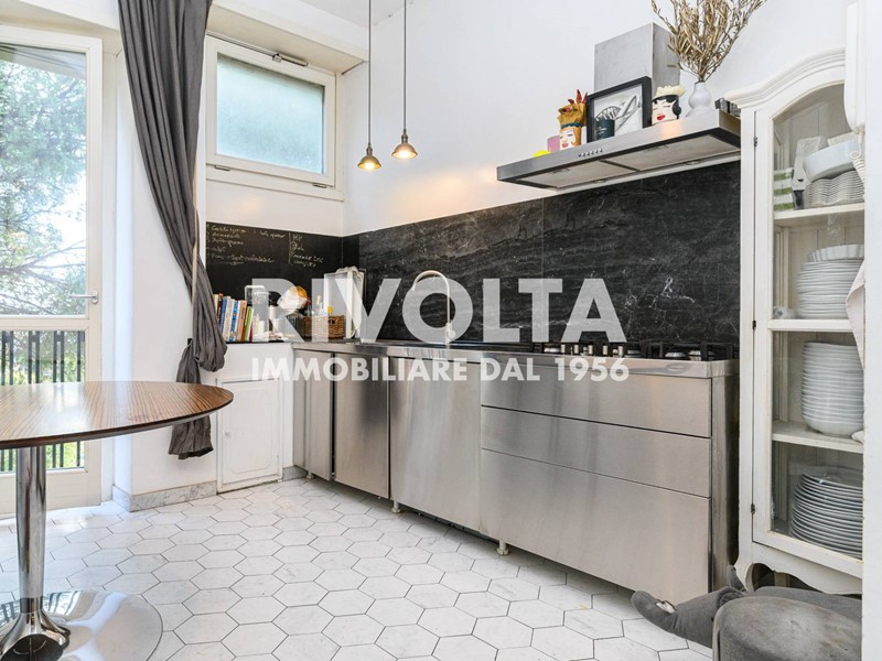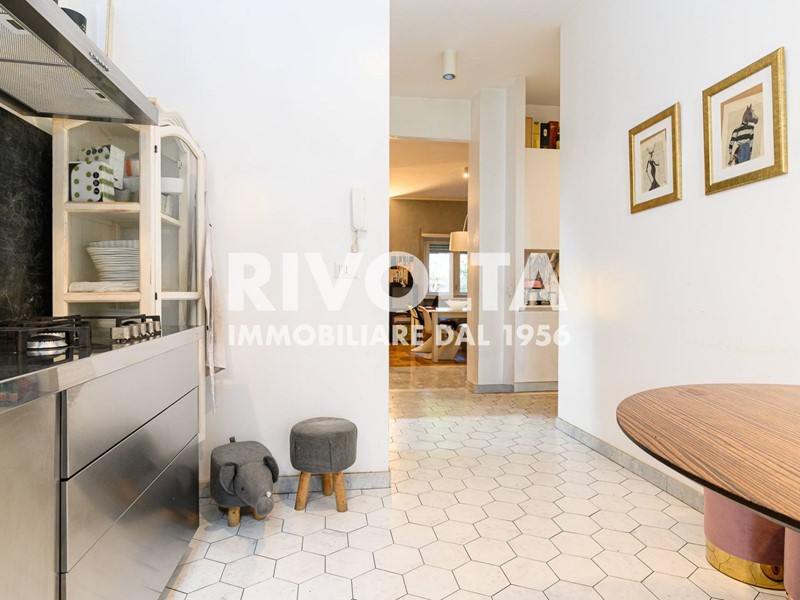 Rivolta vende in esclusiva-in elegante contesto condominiale un esclusivo attico al quinto piano, caratterizzato da quattro affacci che garantiscono luminosità e vedute aperte. Al livello superiore è presente un lavatoio condominiale con area dedicata allo stenditoio e accesso a unulteriore terrazza. Labitazione si distingue per la razionalità degli spazi e leleganza delle finiture ed è composta da: Salone doppio con zona pranzo e accesso diretto alla terrazza, cucina abitabile, camera matrimoniale con affaccio aperto sul verde, seconda camera, dotata di cabina armadio e affaccio aperto, terza camera matrimoniale con soppalco, due bagni padronali finemente rifiniti, camera di servizio con bagno di servizio e posto auto riservato. Dotata di climatizzatori e infissi in legno con vetrocamera. Una soluzione ideale per chi desidera unabitazione di rappresentanza con ambienti ampi, luminosi e affacci tranquilli.