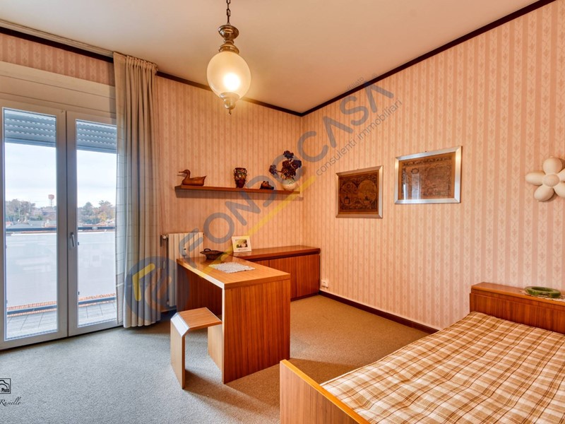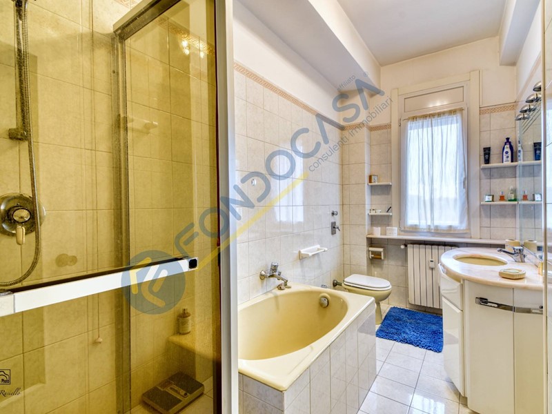 CARATTERISTICHE Sita al quinto piano in uno stabile dotato di ascensore, questa soluzione è composta da spazioso ingresso, soggiorno doppio con accesso a entrambi i balconi della casa, cucina abitabile con secondo accesso a uno dei due balconi, una prima camera con accesso al secondo balcone, camera matrimoniale con cabina armadio, disimpegno e bagno finestrato con doccia e vasca! Le dimensioni generose del soggiorno permettono di creare una terza camera da letto e ottenere facilmente un quadrilocale. Le condizioni interne sono buone: gli infissi sono in PVC con doppio vetro e ribalta, in tutta la soluzione è presente la moquette, ad eccezione di cucina e bagno dove si trova la ceramica. Il riscaldamento è centralizzato con termovalvole, l'importo delle spese comprende tutte le spese generiche e fisse ad eccezione della quota del riscaldamento a consumo. E' presente l'impianto di aria condizionata. L'appartamento ha tripla esposizione EST, SUD e OVEST. Completano la proprietà la cantina e il box singolo di 12 mq.